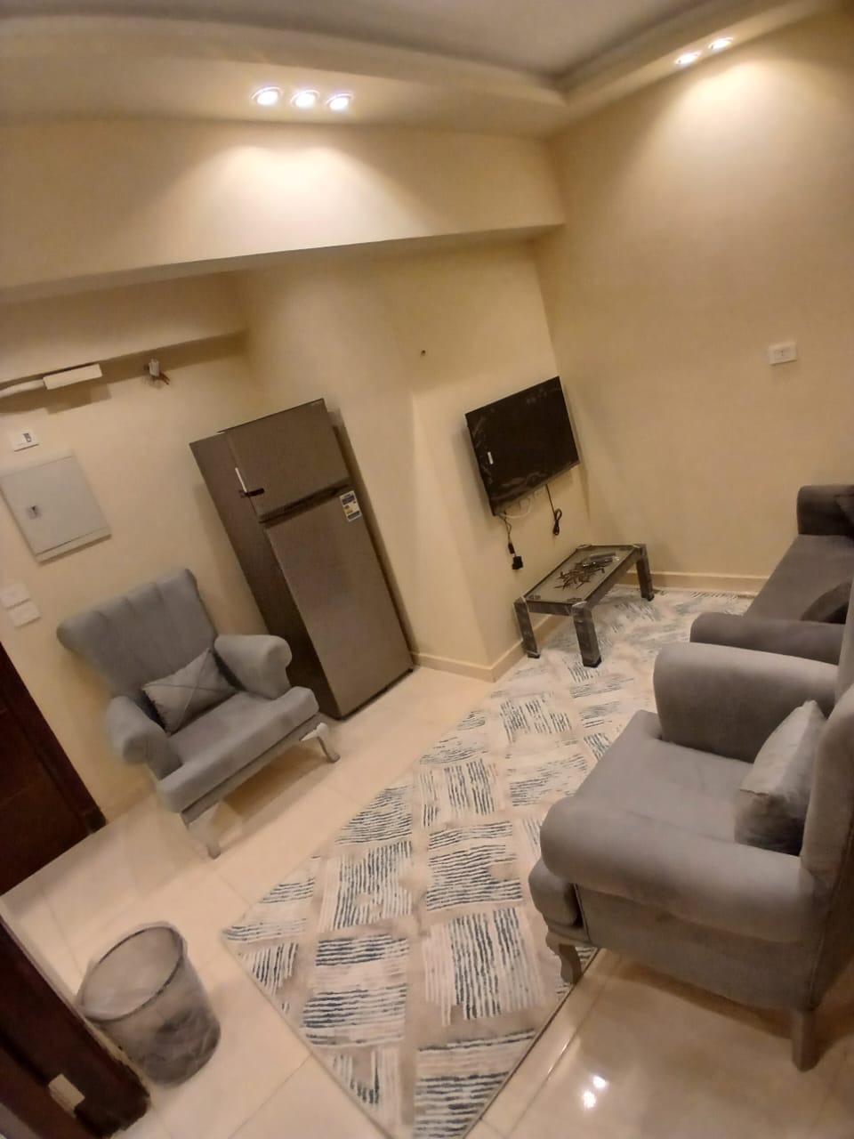 Gemütliche Wohnung in zentraler Lage hinter dem Schießclub und der Mall of Arabia, ganz in der Nähe von Sheikh Zayed City. Modern eingerichtet mit allen Elektrogeräten, Küche, Klimaanlagen und Kaffeeecke. Garantiert bei deinem Check-in in einer sauberen Wohnung und sauberer Bettwäsche während deines Aufenthalts. Zu beachten :- - Für jeden Gast ist eine Kopie des Ausweisdokuments erforderlich. - Für Paare ist eine Heiratsurkunde erforderlich.
