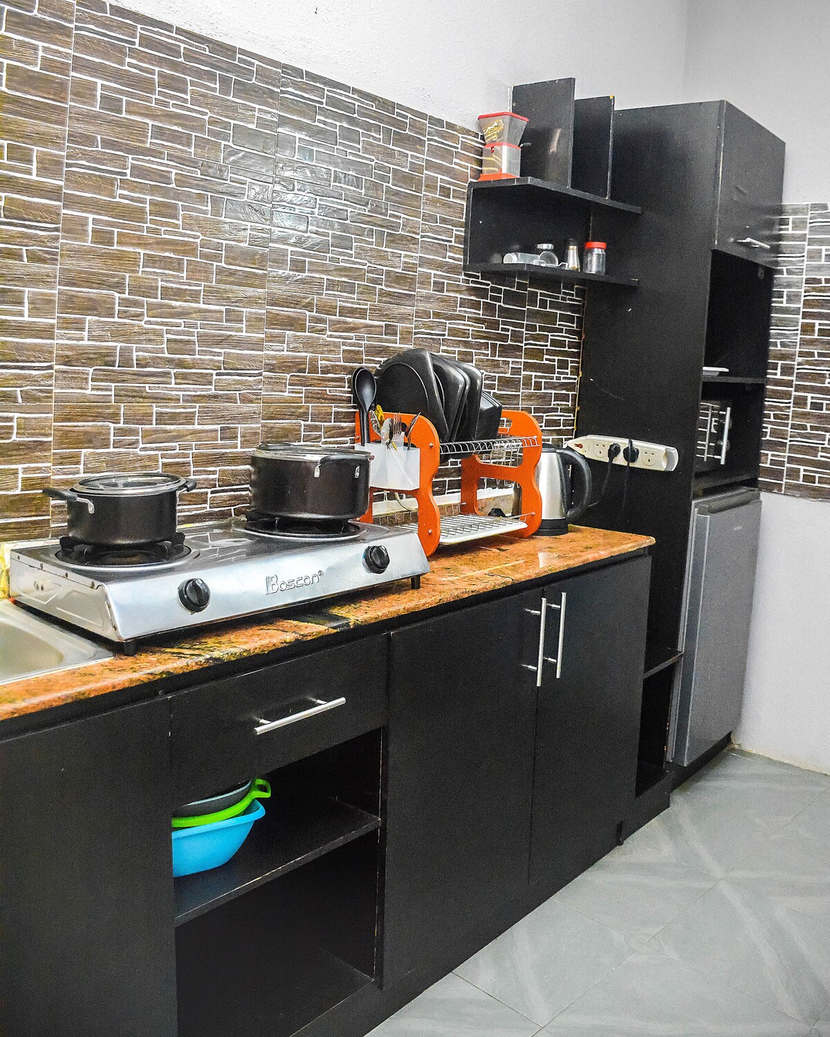 Diese moderne 2-Zimmer-Wohnung ist ideal für Familien und Freunde und bietet bequem Platz für bis zu 4 Gäste. Genieße 24 Stunden Strom mit einem 20-kVA-Wechselrichter, der eine ununterbrochene Klimaanlage in beiden Schlafzimmern gewährleistet. Das Wohnzimmer verfügt über einen 65-Zoll-Smart-TV und aktive Abonnements, die bereits angemeldet sind. Die Wohnung verfügt über eine voll ausgestattete Küche zur Selbstverpflegung, Fernseher in beiden Schlafzimmern und saubere Badezimmer mit kostenlosen Pflegeprodukten. Maximal 4 Gäste. Zusätzliche Gäste = zusätzliche Gebühren.