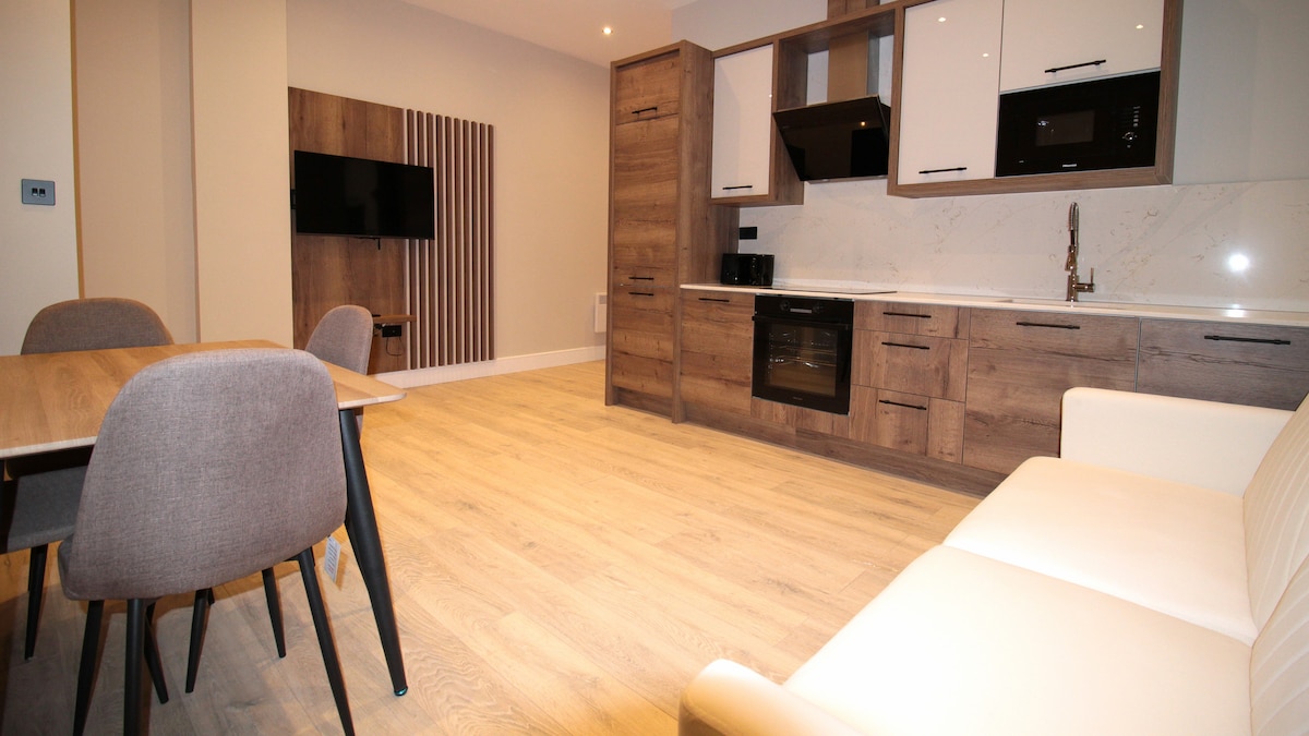 This stylish one-bedroom flat features high-spec finishes, quality furnishings, and a sofa bed for two extra guests. Enjoy a sleek bathroom with a tub, open-plan living, a fully equipped kitchen, and a balcony. Located on the top floor (no elevator). Just 0.7 miles from Acton Main Line, with great transport links and local amenities nearby. Please note that a refundable security deposit (authorised and held by your card provider, not charged to us) is required as part of the booking process.