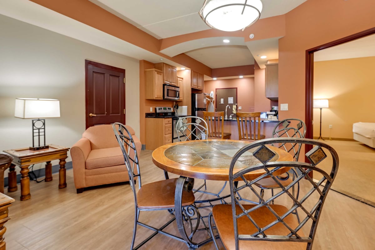 Bring deine Familie oder Freunde in diese schöne Wohnung, wo du ein klassisches Erlebnis in Wisconsin Dells genießen kannst. Alles steht dir zur Verfügung, einschließlich Restaurants & Bars, Golf, Spa, Chula Vista's Innen-/Außenwasserpark (Wasserparkpässe, die nicht in deiner Buchung enthalten sind) und vieles mehr! Diese Wohnung auf der obersten Etage ist geräumig, privat und hat alles, was deine Gruppe zum Entspannen bietet. Genieße den atemberaubenden Blick auf den Sonnenuntergang über den Wisconsin River oder begib dich hinunter zu einem der kostenlosen Außenpools!