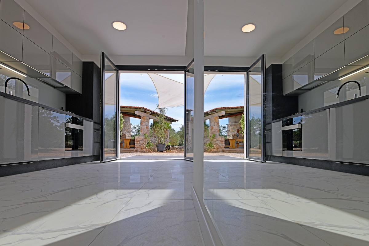 Willkommen in Ihrer Traumvilla, einem wahrhaftigen Juwel der Erholung und des Luxus, ideal gelegen nur 50 km von Zadar entfernt in einer abgelegenen Bucht, die Ihnen absolute Privatsphäre und Ruhe bietet. Diese prächtige Villa wurde kürzlich vollständig renoviert und verfügt über sechs exquisit gestaltete Schlafzimmer, jedes mit einem eigenen Badezimmer versehen, um Ihnen höchsten Komfort und Privatsphäre zu bieten. Beim Betreten der Villa werden Sie von einem modernen und eleganten Interieur begrüßt, das bis ins kleinste Detail durchdacht ist. Jedes Zimmer ist mit erstklassigen Annehmlichkeiten und zeitgemäßer Ausstattung ausgestattet, um Ihren Aufenthalt unvergesslich zu machen. Die geräumigen Schlafzimmer bieten nicht nur luxuriöse Betten, sondern auch einen atemberaubenden Blick auf das azurblaue Meer, das sich vor Ihnen erstreckt. Der Höhepunkt dieses luxuriösen Rückzugsorts ist zweifellos die atemberaubende Terrasse, die mit einem Whirlpool ausgestattet ist, auf dem Sie unter dem funkelnden Sternenhimmel entspannen und den Klang der sanften Wellen genießen können. Nur wenige Schritte entfernt erwartet Sie ein Infinity-Pool, der direkt vor dem Wohnzimmer liegt und Sie mit einem endlosen Panoramablick auf das kristallklare Wasser des Meeres verwöhnt. Die Villa verfügt über einen eigenen Bootsanleger, der es Ihnen ermöglicht, die nahegelegenen Küstenorte und versteckten Buchten mühelos zu erkunden. Wenn Sie Glück haben, können Sie die lokalen Fischer beobachten, die regelmäßig in der Bucht vorbeikommen, um frischen Fisch und köstliche Meeresfrüchte anzubieten, die Sie in der voll ausgestatteten Designerküche der Villa zubereiten können. Die umliegende Landschaft ist reich an aromatischen Kräutern, die Ihre Sinne beleben und Ihnen die Möglichkeit bieten, frische Zutaten für Ihre kulinarischen Abenteuer zu sammeln. Egal, ob Sie sich für einen erholsamen Tag am Pool entscheiden oder die malerische Umgebung erkunden möchten, diese Villa bietet Ihnen alles, was Sie brauchen, um unvergessliche Erinnerungen zu schaffen. Erleben Sie einen unvergleichlichen Aufenthalt in diesem luxuriösen Refugium, das auf perfekte Weise modernen Komfort mit natürlicher Schönheit verbindet und Ihnen eine exklusive Oase der Entspannung und Erneuerung bietet. Willkommen in Ihrem privaten Paradies am Meer.