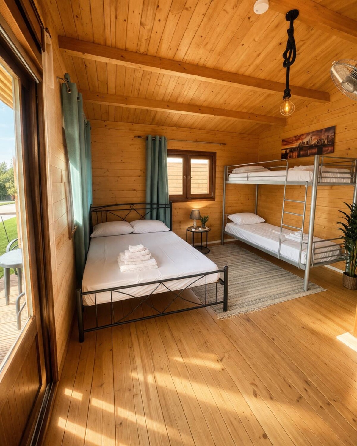 Ξύλινο σαλέ σε συγκρότημα ξύλινων καταλυμάτων, ιδανικό για όλο το χρόνο για οικογένειες & ζευγάρια. Διαθέτει διπλό κρεβάτι και καναπέ-κρεβάτι (για 2 μικρά παιδιά ή 1 ενήλικα), πλήρως εξοπλισμένη κουζίνα με επαγωγικές εστίες, airfryer, τοστιέρα, βραστήρα, AC, TV & σεσουάρ. Μέσα σε κτήμα 2.250 τ.μ. με παιδική χαρά & σκιερό καθιστικό. Μόλις 850 μ. από παραλίες, beach bars & δίπλα από ξακουστή ταβέρνα της περιοχής που λειτουργεί όλο το χρόνο. 25´ από το Ναύπλιο 30´ από Επίδαυρο Parking εντός