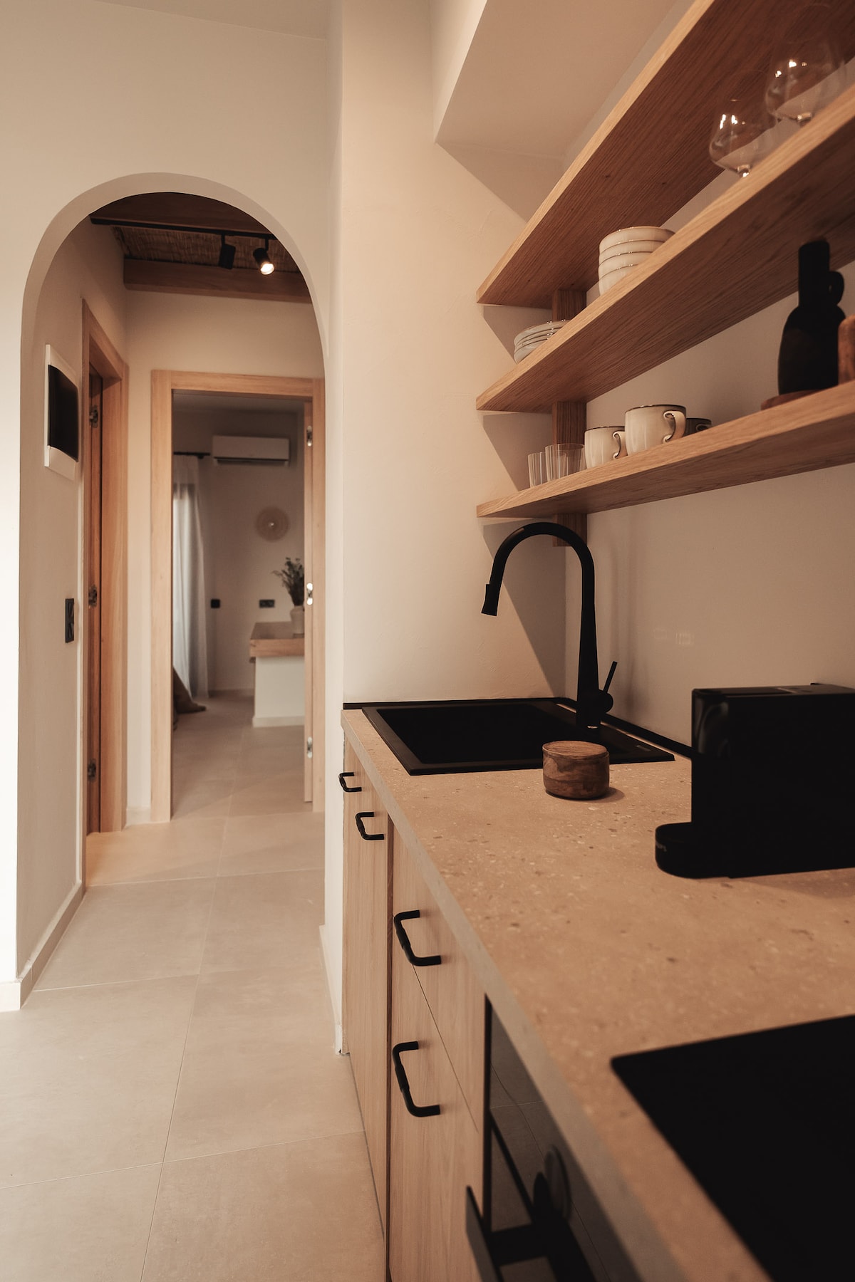 Om Living Afitos is a self-catered holiday accommodation located in the charming village of Afitos, Halkidiki. One of the greatest advantages of Om Living Afitos is its prime location. It is just 350 meters from the crystal-clear Varkes Beach and only a 5-minute walk from the center of Afitos, where you can find restaurants, shops, and bars. Om Living Afitos offers 10 suites, all thoughtfully designed with the same aesthetic vision and dedication to comfort.