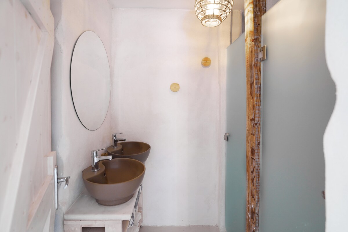 Umgeben von Olivenbäumen und mit einem atemberaubenden Panoramablick wird dich dieses solarbetriebene Haus immer wieder überraschen! Küche und Wohnzimmer sind nicht durch eine Wand getrennt und dies schafft eine offene und komfortable Umgebung. Wir bauen unser Essen auf biologische Weise an und wir haben 8 Hühner und 2 Ziegen, die uns jeden Tag mit frischer Milch und Eiern versorgen. Verschwende also nicht deine Zeit in überfüllten Resorts und langweiligen Wohnungen. Komm zu uns nach Hause, lerne unsere charmanten Ziegen kennen und erlebe etwas Neues!