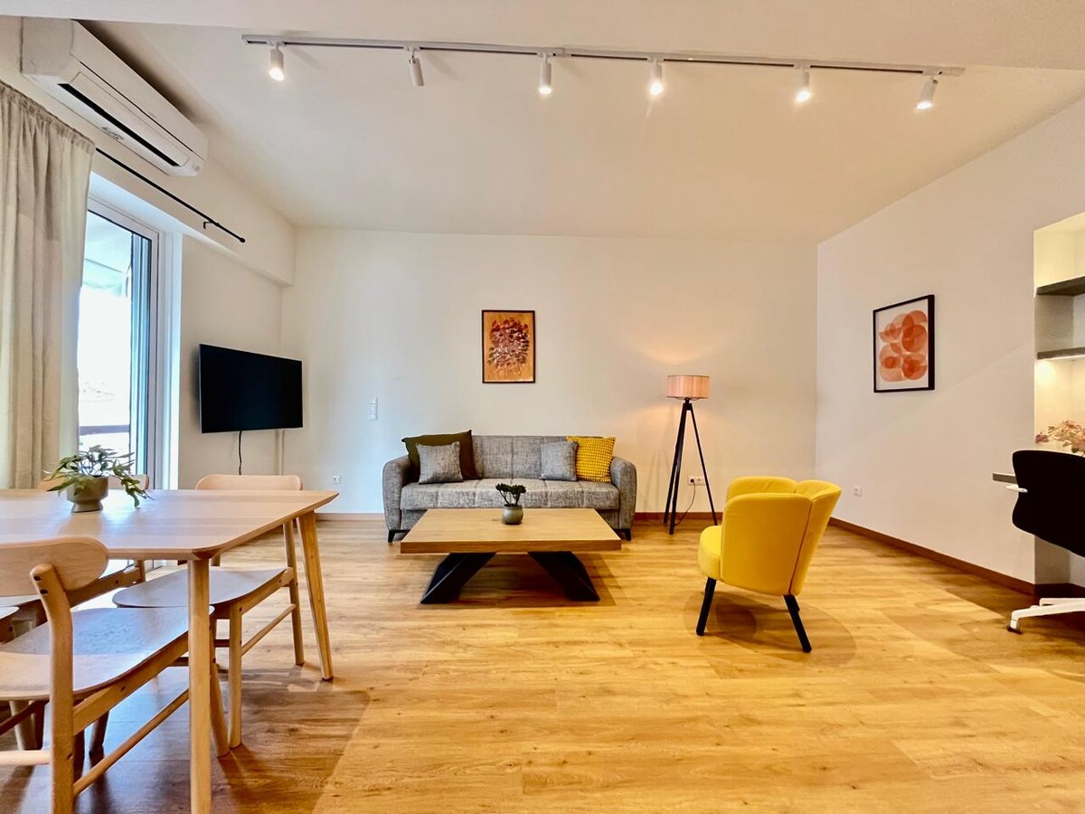 Eine charmante Wohnung verfügt über ein komfortables Wohnzimmer, ein ruhiges Schlafzimmer und eine voll ausgestattete Küche. Entspanne dich im geräumigen Badezimmer nach einem Tag voller Erkundungen. Ideal gelegen, ist es nur eine kurze Fahrt zum historischen Zentrum von Athen und schönen Stränden. Genieße Annehmlichkeiten in der Nähe: Supermärkte, Cafés, Bäckereien, Restaurants, Geschäfte und Parks. Perfekt für Paare, Familien oder Reisende. Diese Wohnung verbindet Komfort, Bequemlichkeit und lokalen Charme. Wir freuen uns schon, dich als Gast begrüßen zu dürfen!