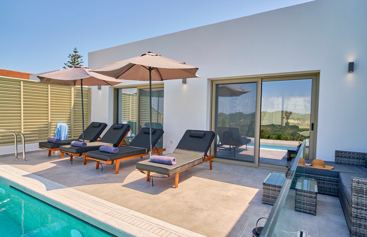 Unsere beiden Polgar Villen umfassen außergewöhnliche Luxusunterkünfte mit privaten Pools und einem atemberaubenden Blick auf die Inseln Arillas und Diapontia. Jede Villa bietet Platz für bis zu 4 Gäste auf einer Wohnfläche von 95 m². Die Polgar Villas befinden sich im Nordwesten Korfus im Dorf Kavvadades. Die Lage ist für Paare und Familien geeignet, die einen erholsamen und ruhigen Urlaub mit einfachem Zugang zu organisierten Sandstränden und Orten mit einzigartigem Meerblick und Sonnenuntergängen verbringen möchten.