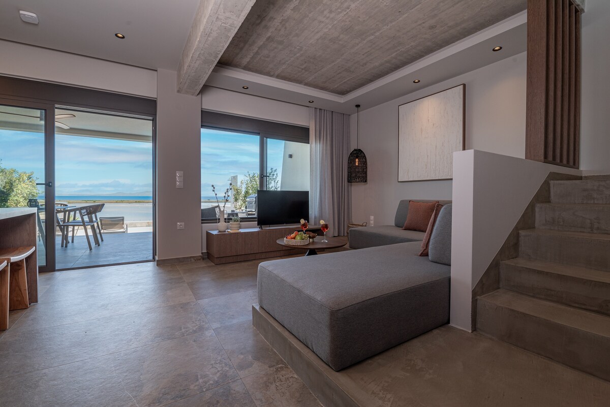 Unsere geräumige, komplett renovierte Wohnung ist geschmackvoll mit modernen Annehmlichkeiten eingerichtet, darunter zwei Klimaanlagen, Glasfaser-Internet, eine Waschmaschine, einen Geschirrspüler und eine voll ausgestattete Küche für einen angenehmen Aufenthalt. Sie wurde für dich entworfen und sorgt dafür, dass du dich wie zuhause fühlst. Das Schlafzimmer ist für zusätzliche Privatsphäre getrennt. Du bist nur wenige Schritte vom Strand entfernt, mit einfachem Zugang zu Tavernen, Restaurants, Cafés, Geschäften, einer Bushaltestelle, einem Tennisplatz und einem lokalen Museum. STRAND – 1–2 Gehminuten entfernt.