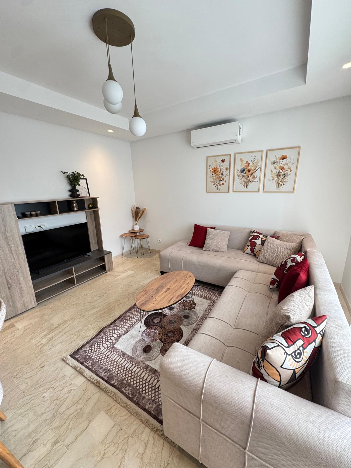 Erleben Sie einen ruhigen Urlaub in einer modernen und hellen Wohnung, ideal gelegen im neuen Viertel Zenata Eco-City in Casablanca. Nur 5 Gehminuten vom Strand entfernt, empfängt Sie diese voll möblierte Unterkunft mit einem Schlafzimmer in einer warmen Umgebung, die geschmackvoll eingerichtet und von natürlichem Licht durchflutet ist. Es ist der ideale Ort für einen Aufenthalt, der Entspannung, Komfort und Zweckmäßigkeit verbindet.