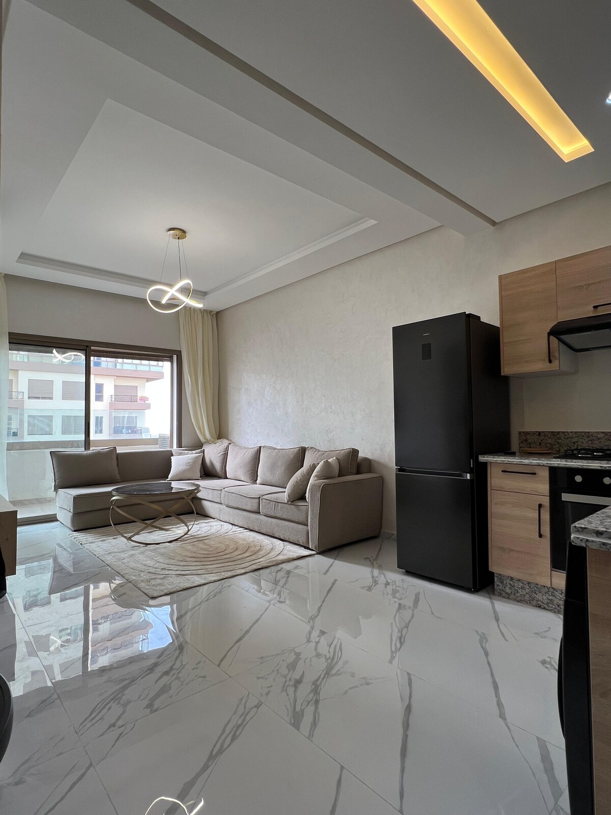 Welcome to this beautifully furnished, bright and spacious one-bedroom apartment located in Zenata Eco-City, Casablanca, just a 3-minute walk from the beach. Key features: - Complimentary parking slot - Beach nearby (across the street) - Pool - Family friendly - Baby crib / high chair - Playground for children nearby - Remote working friendly - Smart lock - Secure and well-maintained building - Wifi - Smart TV - AC / heater - Coffee machine - Well equipped kitchen - Elevator - Interior garden