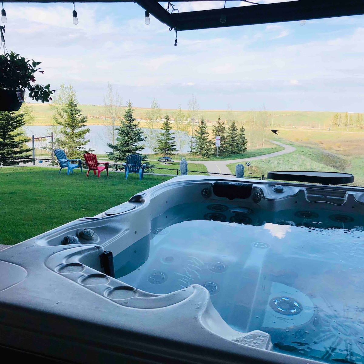Keine Reinigungsgebühren! Gemütliche private große begehbare Exec-Suite. Ruhige Sackgasse. Privater Eingang. Voll ausgestatteter Küchen-Essbereich, Schreibtisch, 65-Zoll-Smart-TV, 4K Netflix, TV-Filme, Chromecast, großer Wohnbereich, Liegesofa, Schlafsofa. Terrassentisch, Stühle, große Whirlpool-Liege, Feuerstelle. Das Grundstück liegt am Teich, mit einem Weg. 2 Mountainbikes stehen zur Benutzung bereit. Pendelzeiten: Flughafen 10 Min., Innenstadt 25 Min. Schneller Zugang und FREE PASS zum Banff Ntl. Park (überspringe die Warteschlange – und nutze die Expressspur). Die Suite ist nicht für Kinder geeignet.