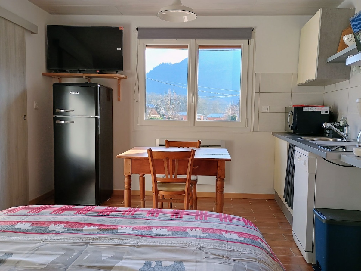 Découvrez notre charmant studio au pied des majestueuses montagnes, parfait pour un séjour en couple, notre studio de 26 mètres carrés offre une atmosphère chaleureuse et accueillante. Avec sa chambre en mezzanine, il peut accueillir confortablement deux personnes et une troisième grâce à son canapé lit. Idéalement situé à seulement 45 minutes des stations de ski et à 10 mn du Wam park, cet hébergement vous offre la combinaison parfaite entre détente et aventure en plein air.
