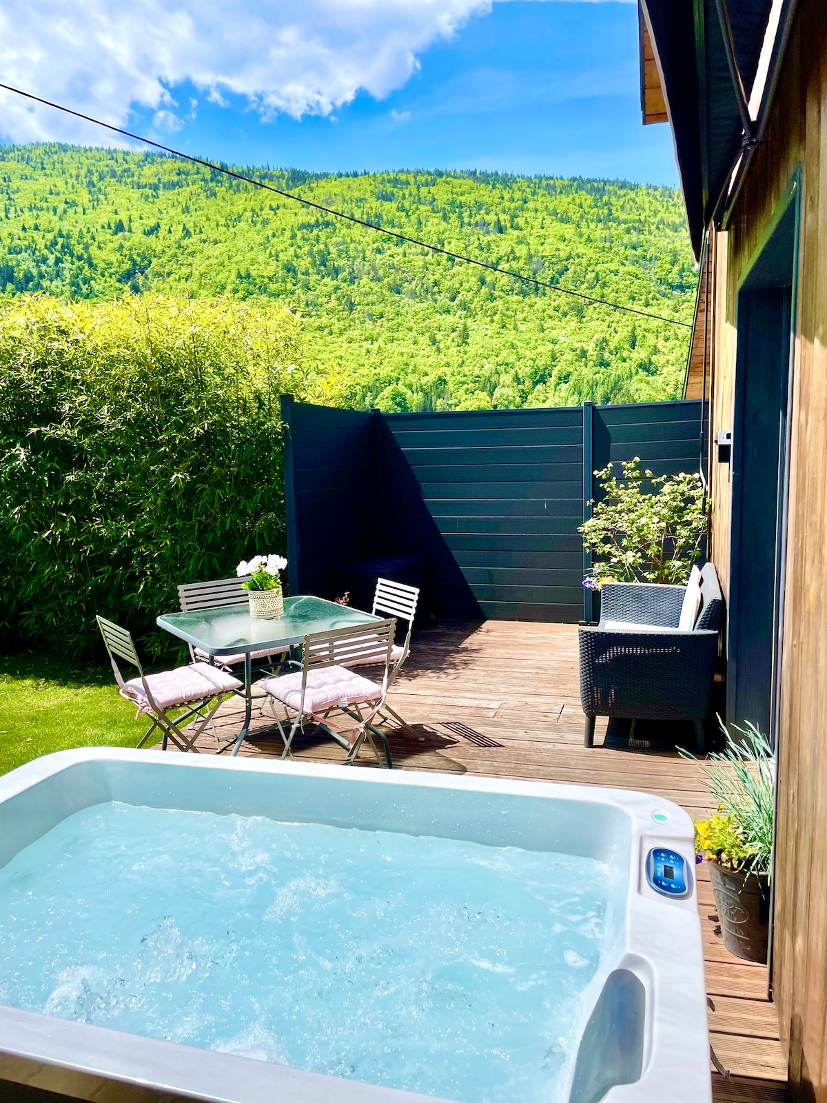 Die Garage à François taucht Sie in eine Atmosphäre im industriellen und bergigen Stil ein. Dieser Ort ist perfekt, um sich mit der Familie oder mit Freunden zu treffen. Es gibt nichts Schöneres, als unter den Blasen eines Whirlpools oder des Pools unter einem Sternenhimmel zu entspannen. Absolute Ruhe mit seinem schönen Bach. Dieser Ort ist einfach MAGISCH!