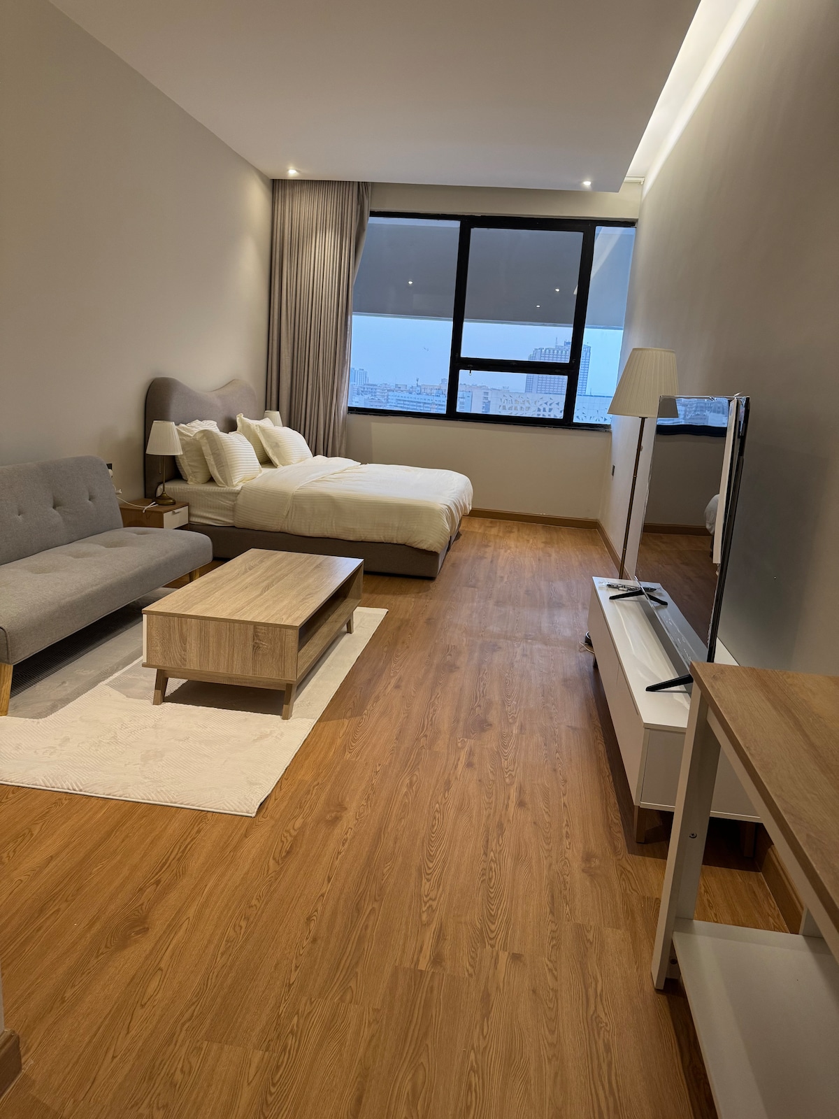 Enjoy a modern stay in Riyadh’s Olaya. This stylish apartment features a private balcony with outdoor seating, a cozy bedroom with smart separation, a comfortable living area, fully equipped kitchenette, in-unit washing machine, and workspace. Just an 8-minute walk to the metro, with Al Jazirah Hypermarket right across the street. The area is vibrant and full of restaurants and cafés—perfect for food lovers and business or leisure stays.