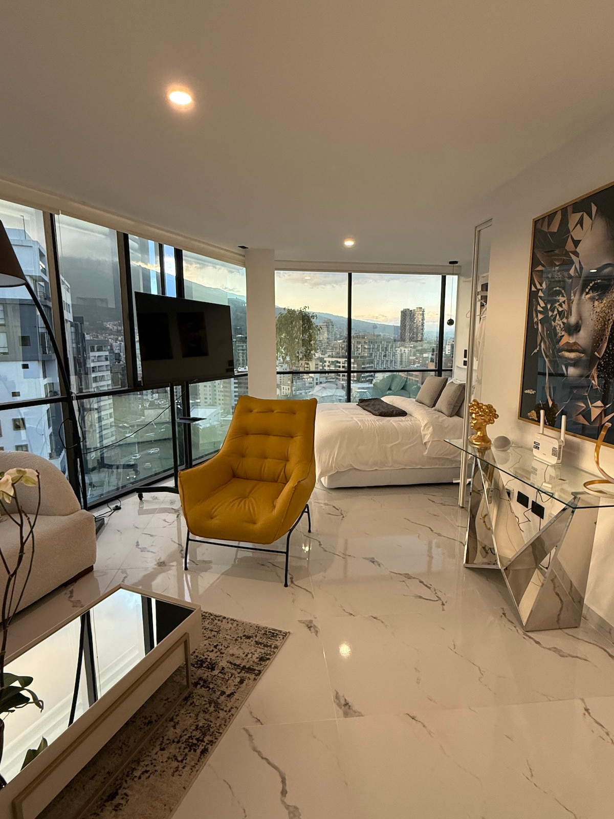 Luxus-Wohnung mit 3 Schlafzimmern, La Carolina, Schlafplätze für 9. Erstklassige Lage in Republica del Salvador, die sicherste und beste der Stadt, nur wenige Schritte von der QuiCentro Mall, Parks, Restaurants und dem Nachtleben entfernt. Abholung vom Flughafen, Fahrer, Autovermietung verfügbar. Als lizenzierte Reiseveranstalter mit 13 Jahren Erfahrung arrangieren wir unvergessliche Ausflüge in ganz Ecuador. Genieße Spa-Behandlungen & einen privaten Kochservice direkt zuhause. Stilvoller Komfort, unschlagbare Bequemlichkeit – dein perfektes Zuhause und dein Aufenthalt in Quito erwarten dich. Dreisprachige kanadische ecuadorianische Gastgeber.