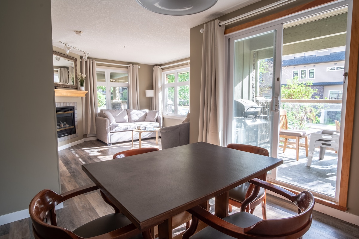 Erlebe das Leben in den Rocky Mountains in einer brandneuen geräumigen Eigentumswohnung im dritten Stock in der Gemeinde Spring Creek, nur wenige Schritte von der Innenstadt von Canmore entfernt. Eine Gourmet-Küche, einladendes Wohnzimmer mit Smart-TV, Kamin. Die 2-Zimmer-2-Bäder-Wohnung verfügt über ein Hauptschlafzimmer mit Kingsize-Bett, ein Gästezimmer mit Queensize-Bett und ein Queensize-Schlafsofa. Sie ist ein perfekter Ausgangspunkt für einen Bergurlaub. 2 riesige Terrassen mit unglaublichem Blick auf die Berge. Nutze den Whirlpool, das Fitnessstudio und die kostenlosen Tiefgaragenplätze des Resorts. Familienparkpass inklusive.