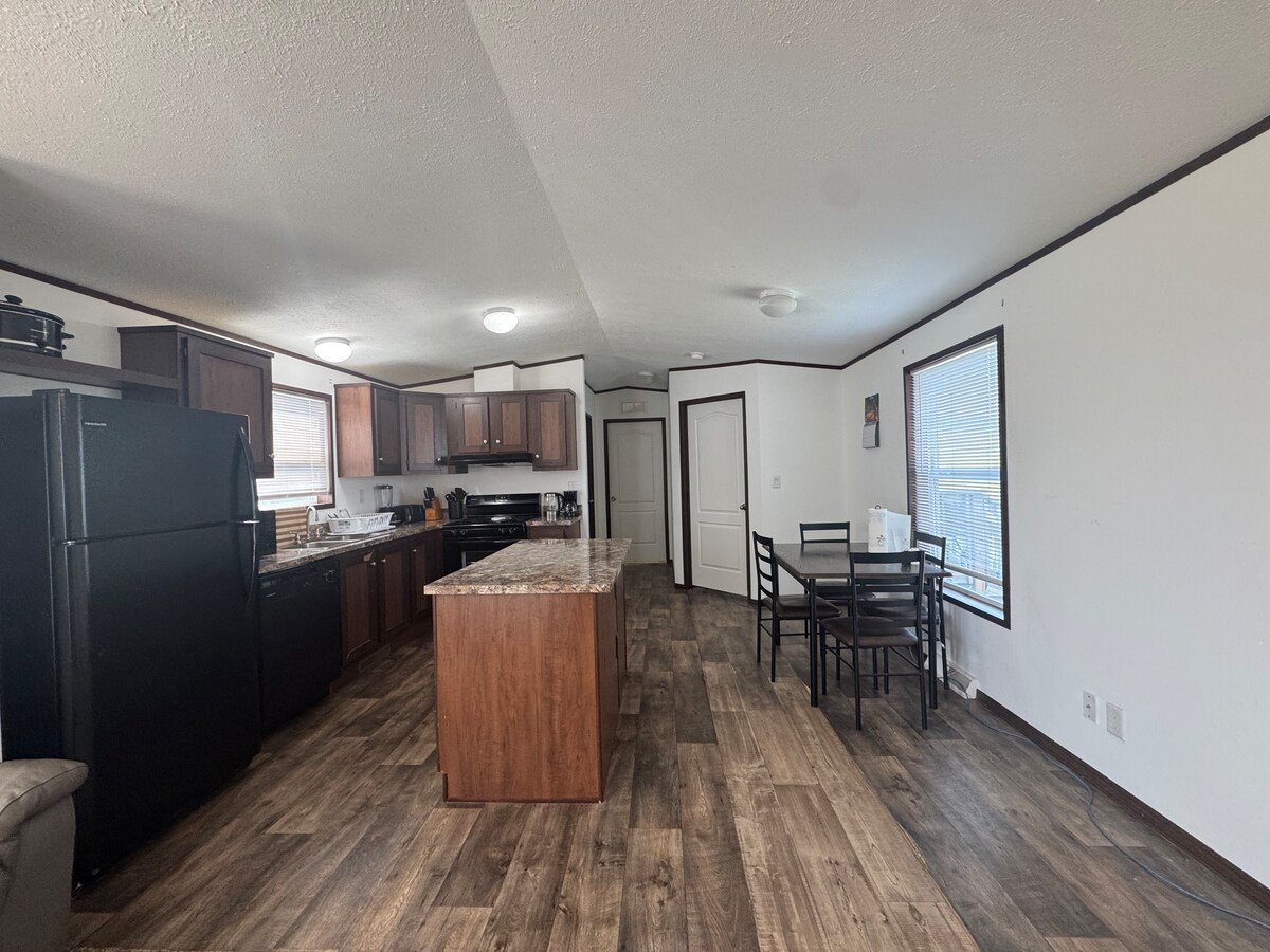Erlebe unseren handgefertigten, familiengefertigten Rückzugsort mit einzigartiger Handwerkskunst und umfunktionierten Materialien. Geräumig, kinder- und jägerfreundlich, bietet es einen Grill, einen gemütlichen Kamin, einen Massagestuhl, eine Bar, eine voll ausgestattete Küche und eine Waschküche. Wir sind auf Komfort ausgelegt und offen für Vorschläge, um deinen Aufenthalt perfekt zu machen. Ideal für Familien oder eine Gruppe zum Entspannen und Entspannen!
