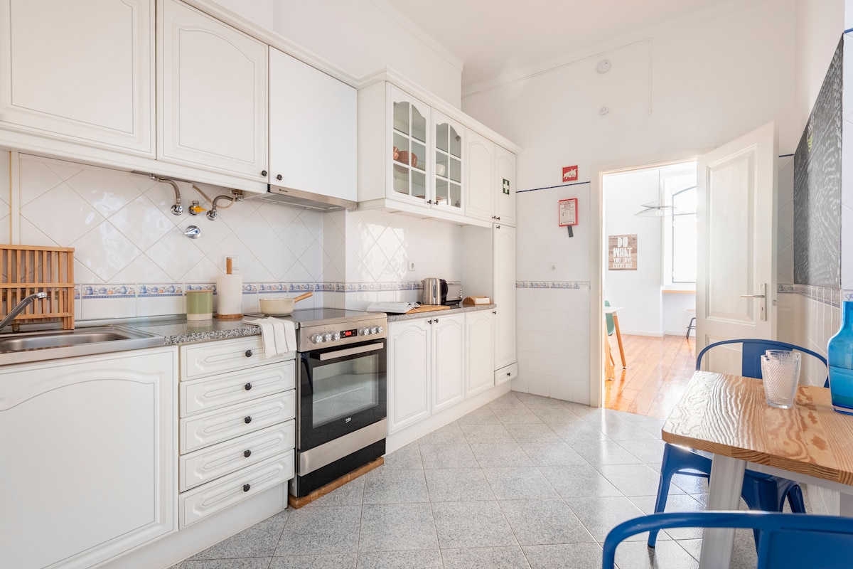 Hohe Decken, hellblaue Akzente und ausdrucksstarke Wandkunst treffen auf ein Fenster mit Bilderrahmen und Blick auf die historischen Straßen von Baixa. In diesem hübschen 1-Schlafzimmer-Nest wohnst du im Herzen von Lissabon – nur wenige Schritte von der Kathedrale, der Straßenbahnlinie 28 und dem Praça do Comércio entfernt. Der perfekte Ausgangspunkt für Alleinreisende oder Paare in einer Stadt, die zu Fuß erkundet werden kann.