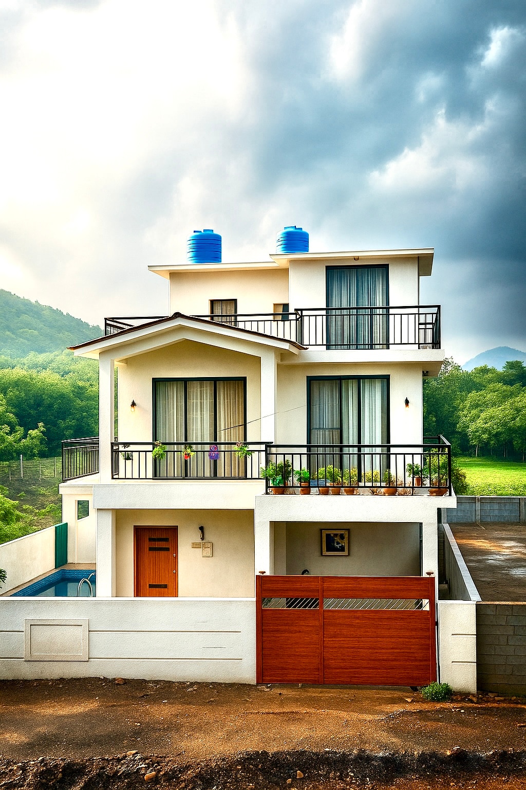 Eine ruhige 4 BHK private Villa, nur wenige Minuten vom ruhigen Thal Beach in Alibag entfernt. Genieße den Komfort eines privaten Pools, eines wunderschön angelegten Gartens und moderner Annehmlichkeiten und Innenräume — perfekt für Familien und Gruppen, die einen ruhigen Urlaub an der Küste suchen. Das Anwesen verfügt über 2 Zimmer im Erdgeschoss und 2 Zimmer im ersten Stock. Es bietet einen atemberaubenden Blick auf die Berge von der Terrasse, ausreichend Parkplatz, einen gemütlichen Sitzbereich auf dem Rasen und einen perfekt großen Pool, ideal für 10 bis 12 Gäste.