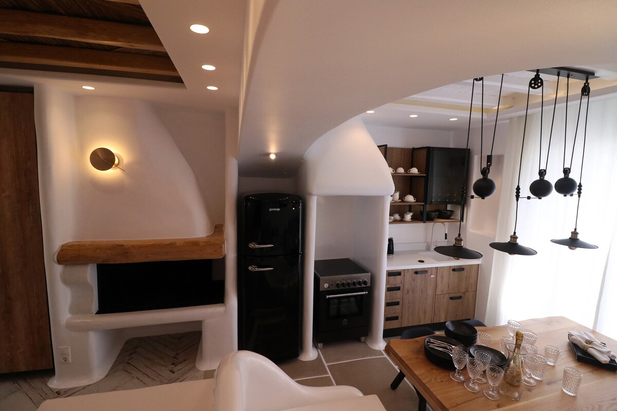Willkommen in einer brandneuen, wunderschön gestalteten und eingerichteten Vier-Zimmer-Wohnung im Herzen von Naoussa. Die Einrichtung und das Dekor sind in Weiß- und Sandfarben und mit natürlichen Holzakzenten gestaltet, wodurch eine entspannende Atmosphäre entsteht. Es gibt zwei private Terrassen, eine mit einem Whirlpool und einem Esstisch. Genieße das stilvolle Erlebnis.