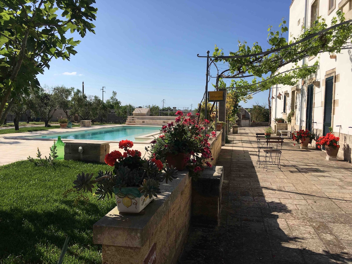 Die Unterkunft befindet sich in einer Masseria auf dem Land des Salento, nur wenige Kilometer vom Meer von Otranto entfernt, ideal gelegen, um sowohl die Adria als auch das Ionische Meer zu erreichen. Sie befindet sich im Zentrum der „Grecìa Salentina“, einem Land alter Traditionen. Das Anwesen verfügt über einen großen Garten und einen Swimmingpool für die Gäste.