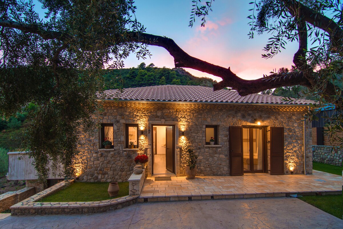 Dies ist ein gemütliches Landhaus, nur 20 Meter vom Meer entfernt und befindet sich in der ländlichen Küstenstraße zwischen Ligia und Rock. Es zeichnet sich durch einen endlosen Blick auf das Ionische Meer aus. Auf der linken Seite siehst du Lefkada, während du direkt gegenüber von Paxos - Antipaxos bist. Es gibt absolute Ruhe, die nur von den Spritzern der Wellen erschüttert wird. Ein 100 Meter langer Strand zum Schwimmen, umgeben von einer Vielzahl von Stränden mit säkularer als Loutsa.
