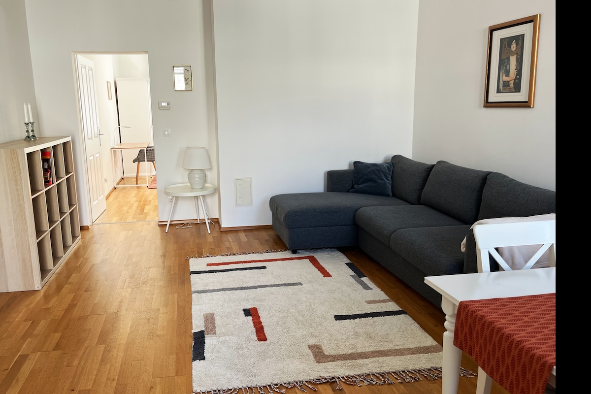 Frisch renovierte (Juni 2018) 2-Zimmer-Wohnung mit ca. 45 qm im 3. Stock (plus Mezzanin) in einem Jahrhundertwendehaus. Ideal für Pärchen mit und ohne Kinder. Durch das ausziehbare Schlafsofa können aber auch vier Erwachsene gut und gemütlich übernachten.