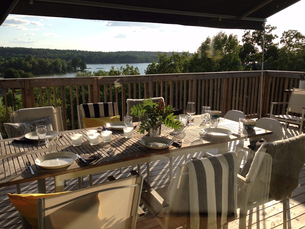 Neu gebautes eigenes Haus in erhöhter Lage mit Terrasse 2 Minuten zum Bus (15 Minuten nach Gullmarsplan, 20 Minuten zur Stadt Slussen Stockholm). Parkplatz inbegriffen. Bettwäsche, Handtücher, Verbrauchsmaterialien sind inbegriffen. Fernseher mit Chromecast. Geschirrspüler und Waschmaschine. 5 min zum Badesee, 15 min zum Naturschutzgebiet. 2 Minuten zum Lebensmittelgeschäft, das täglich von 08-22 geöffnet ist. 2 Fahrräder sind im Preis inbegriffen. Stockholm City 35 min, das Meer (Ostsee) mit Sandstrand, 30 Min. Hinweis: Als Gäste sind nur Nichtraucher erlaubt, da wir Allergiker sind.
