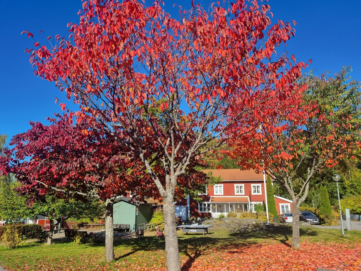Willkommen in unserem schönen Haus in Älta auf 150 m². Das Haus verfügt über einen großen Garten mit Terrasse, sowohl vorne als auch hinten. Das Haus befindet sich in einer ruhigen Sackgasse mit etwa 300 Metern zum Wald. Das Haus ist perfekt für Familien mit Kindern oder Gäste, die gerne Fahrrad fahren, wandern und in der Natur laufen. Der Aufenthalt in Älta ist perfekt für diejenigen, die das Stadtleben mögen, da du auch das Stadtzentrum Södermalm/Slussen in 20 Minuten mit dem Bus erreichst. Auch die Bushaltestelle ist nur ein paar Gehminuten vom Haus entfernt. Herzlich willkommen
