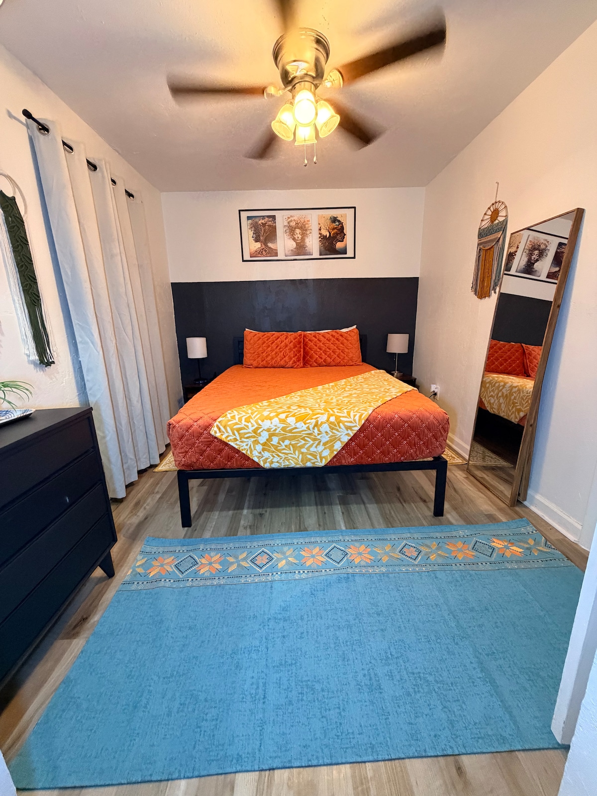 The Chartreuse Moose is part of a triplex, but feels more like a cabin. TV, Netflix, HBOmax, Starz, Prime Video, & High speed wireless internet included. The kitchen is good sized, with mostly new appliances, that offers everything you need to prepare your own meals. New compact washer and dryer in the bathroom. You’ll sleep like a baby in the king size bed with a brand new mattress. There is a daybed with a trundle bed in the living room. All the windows have room darkening curtains or blinds.