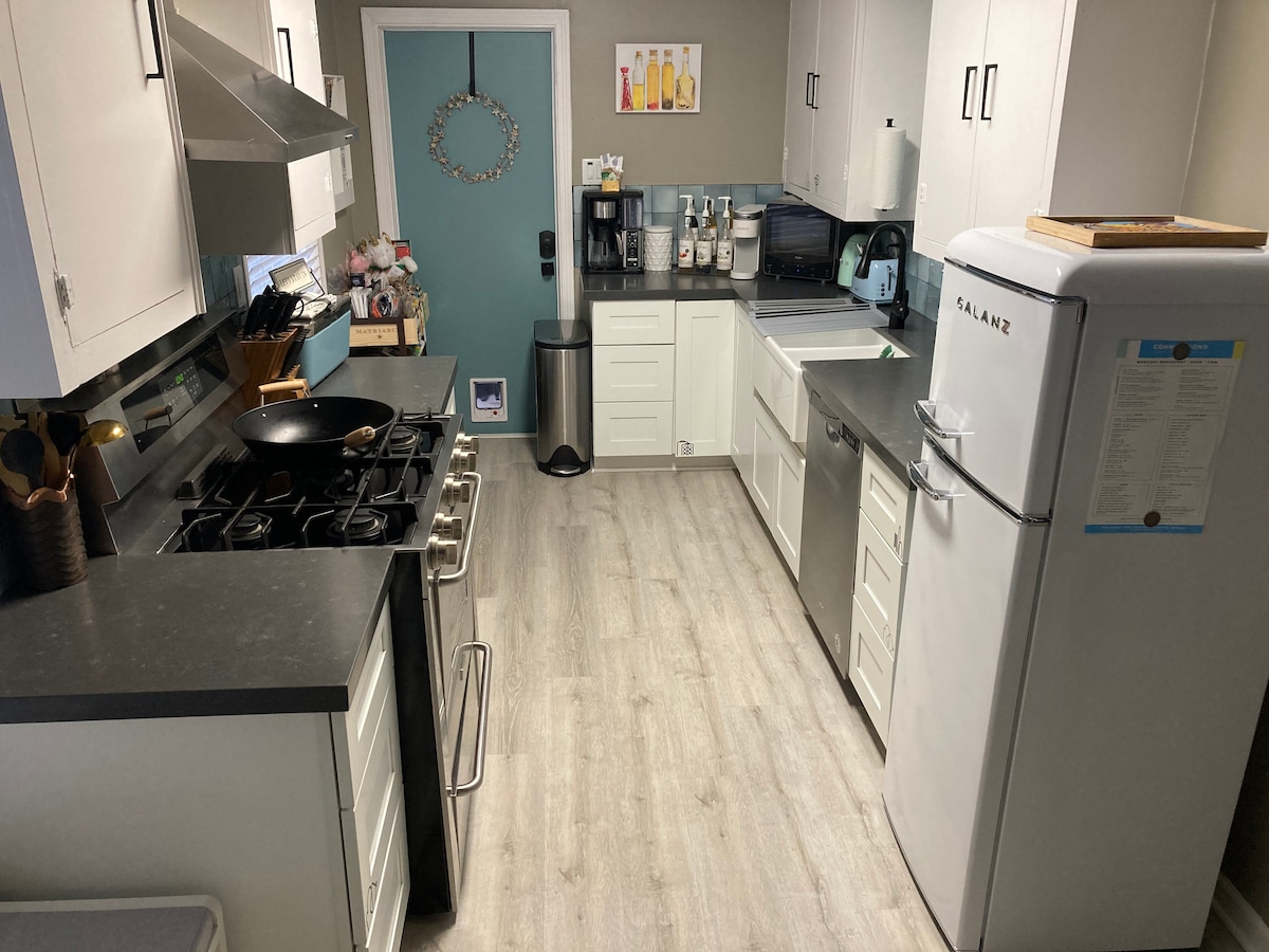 *2 Gehminuten zum Med Center *2 Gehminuten zur U-Bahn in die Innenstadt & NRG *5 Gehminuten vom Rice Uni-Bereich entfernt *10 Gehminuten vom Hermann Park entfernt *Geeignet und geräumig für 1 bis 5 Personen *Eine helle, luftige, komplett mit Hartholz ausgestattete 2-Zimmer-/2-Badezimmer-Maisonette, die 2021 renoviert wurde. *1300 Quadratfuß im Erdgeschoss in neu eingerichtetem Haus aus den 1940er Jahren *WLAN, Smart-TV, W/D-Zugang, reichlich Luxus-Bettwäsche, Handtücher und kostenlose Pflegeprodukte sowie Kaffee in Hülle und Fülle! *Dyson Hepafilter- und GermGuardian-Einheiten *Voll ausgestattete Küche *Privater Eingang *1 Parkplatz abseits der Straße oder Genehmigungsplatz