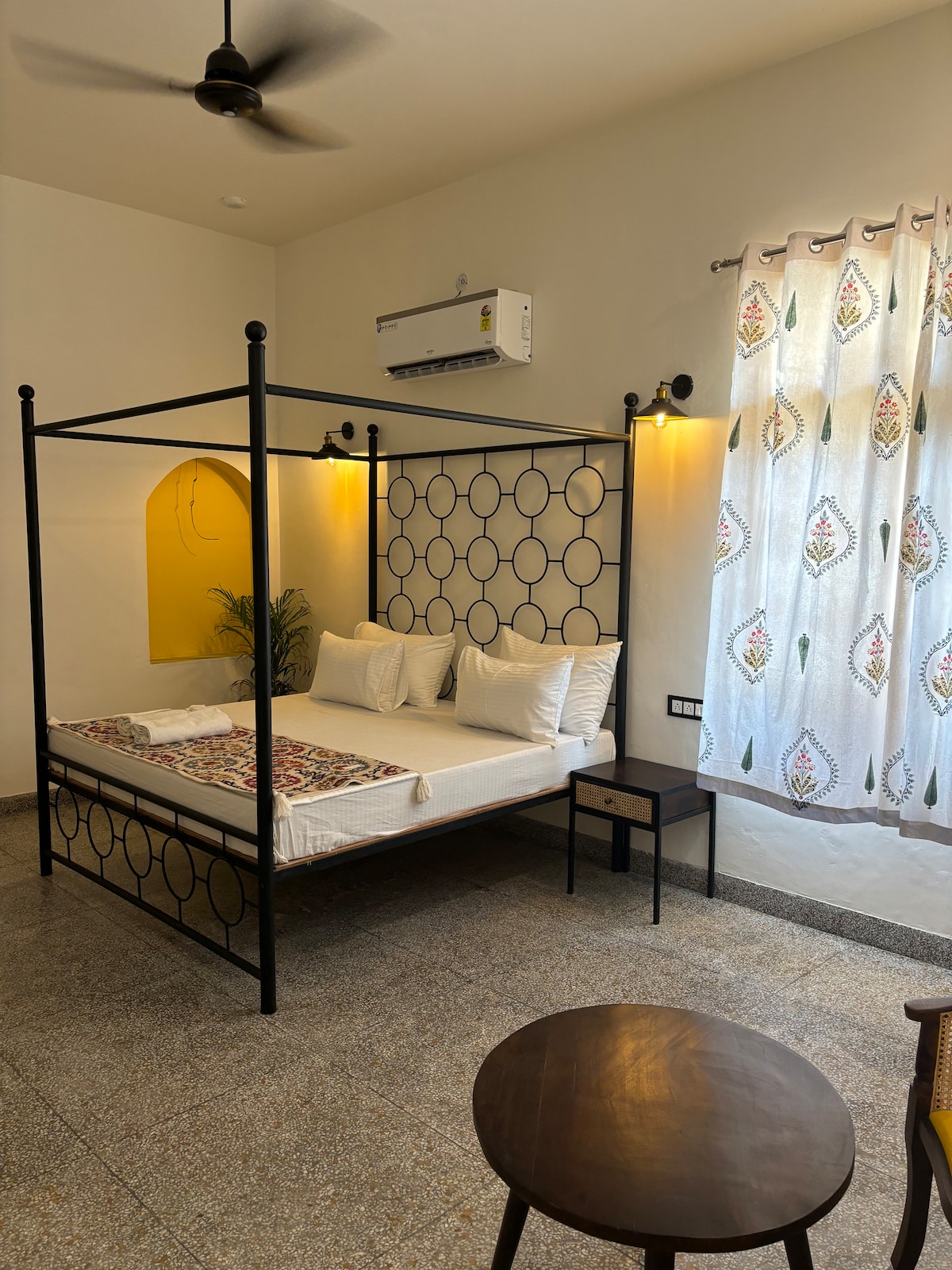 Das Bauernhaus bietet Zimmer mit Bergblick, exotische Speisen, kostenloses WLAN, einen Swimmingpool, einen Kamin, Musik und eine ruhige Umgebung. Die Ritumbhara Farm liegt versteckt an der Sariska Road, nur wenige Minuten vom Sariska-Tigerreservat entfernt, und ist ein idyllisches, luxuriöses Bauernhaus, das für erholsame Kurzurlaube, Familienfeiern und unvergessliche Wochenenden konzipiert wurde. Wache mit Vogelgesang auf, genieße Chai unter freiem Himmel und entspanne dich in absoluter Privatsphäre – abseits vom Stadtlärm und dennoch nah genug für einen spontanen Wochenendausflug von Delhi nach Jaipur.