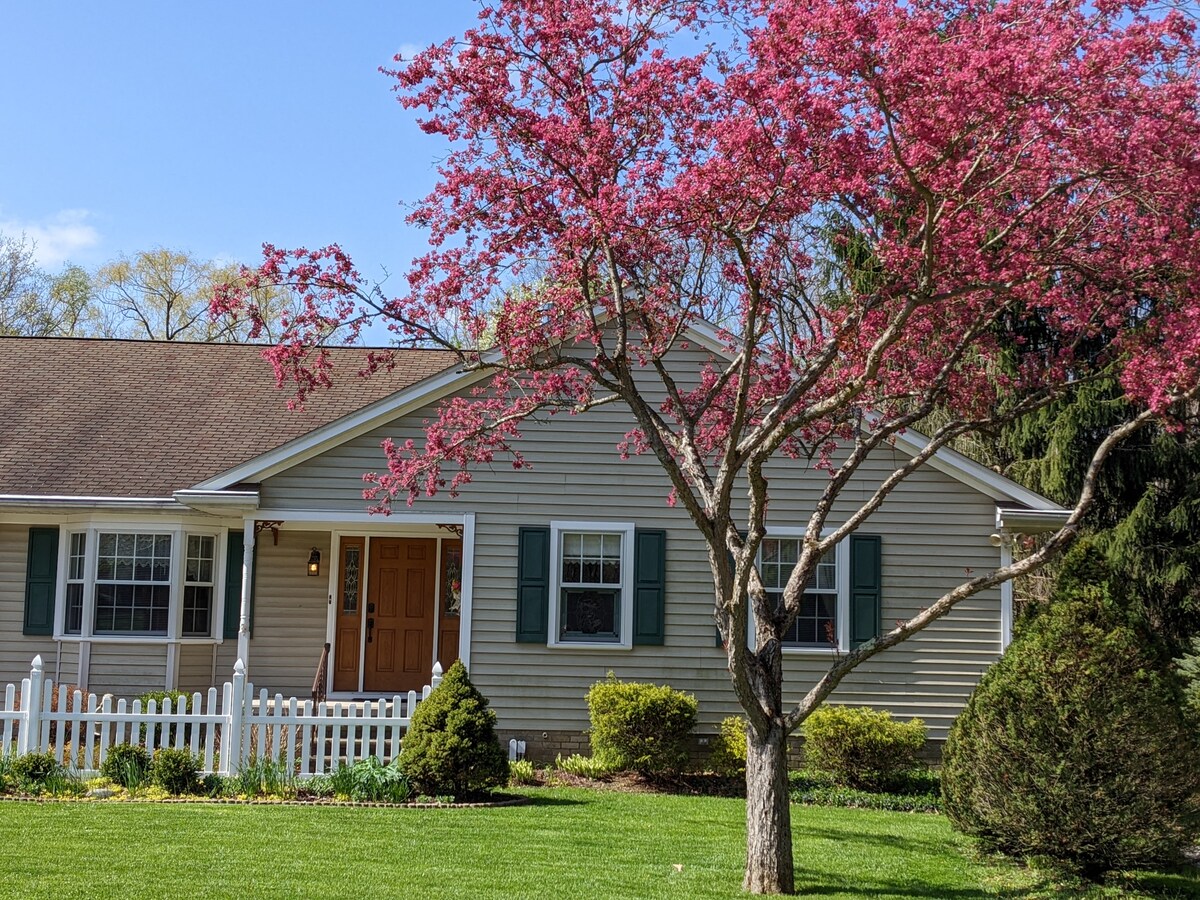 Ranch mit Waldgrundstück in der Nähe von Lake Erie und Oberlin Komfortable und gemütliche Ranch mit 2 Schlafzimmern, die mit Tageslicht durchflutet ist. Die Rückseite des Hauses bietet einen Blick auf ein Waldgebiet und eine natürliche Umgebung, die Vögel und Wildtiere anzieht, die von der erhöhten, abgeschirmten Veranda aus genossen werden können.