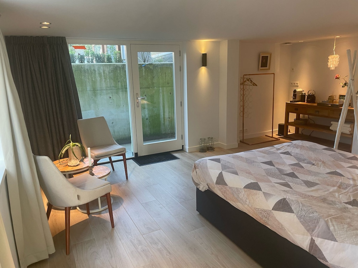 A charming retreat, our private guest suite is in a quiet residential neighborhood. The space is bright & beautiful, with a lofted, beamed ceiling and large four-poster bed. Private entrance through the shared garden. It is 25 minutes to Amsterdam center and 15 to Ajax Arena, Ziggo Dome, AFAS Live, & Schiphol Airport. A train station nearby allows access beyond Amsterdam. Free parking, wifi, cable, tea & coffee. Suite is deep cleaned & disinfected after every stay.