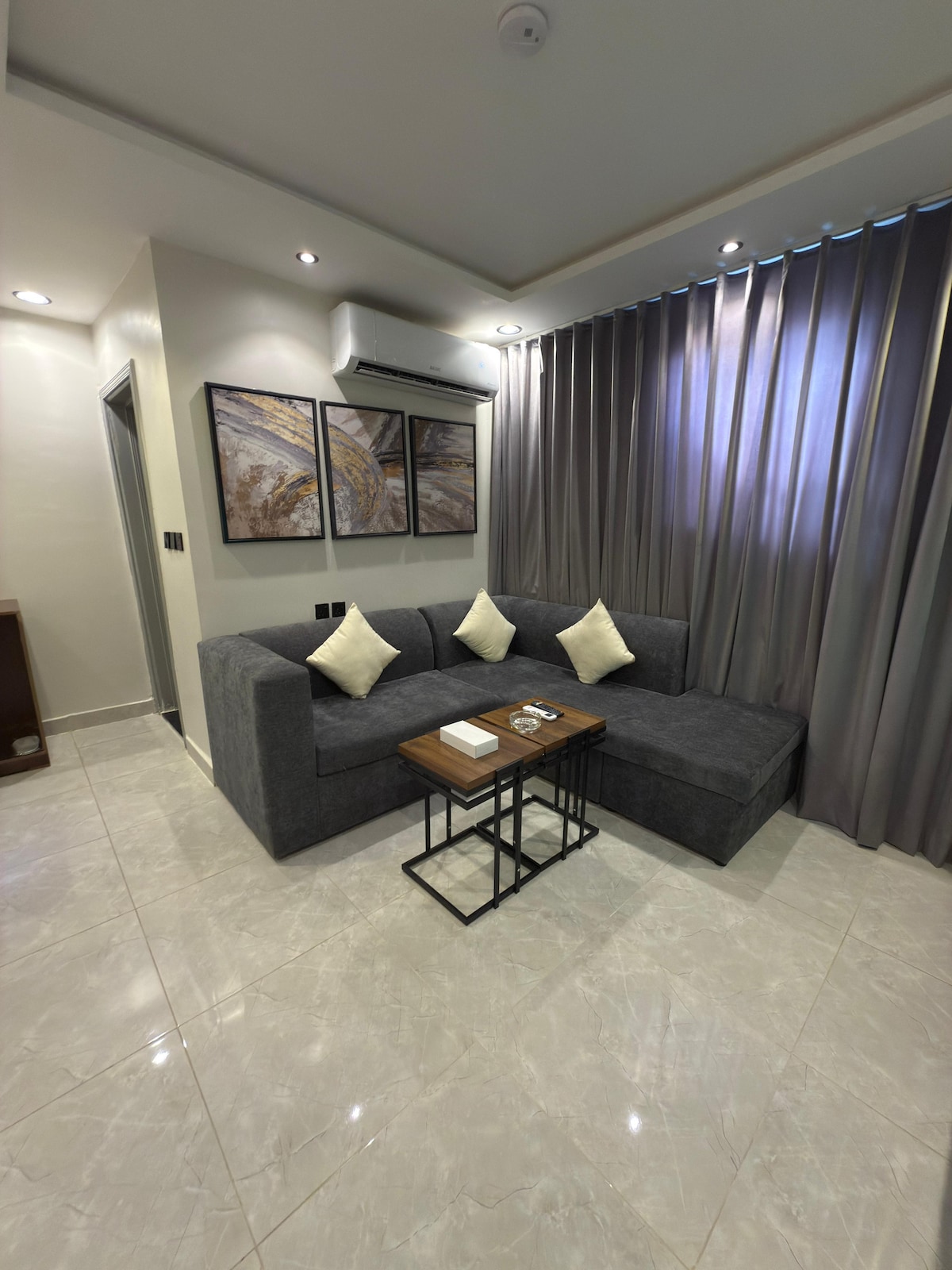 Luxus-Apartment nördlich von Riad Entworfen, um anders und stilvoll zu sein, mit einem Garten im Freien, Es hat absolute Privatsphäre und Selbsteintritt . Strategische Lage 📍 In der Ferne gelegen: 15 Autominuten von der Saison Riad entfernt.🌟 10 Minuten vom Riad-Park entfernt. 🛍️ 13 Minuten vom King Abdullah Financial Center entfernt. 🏙️ 18 Minuten vom internationalen Flughafen King Khalid entfernt.🛫 Es besteht aus einem amerikanischen Zimmer, einer Lounge, einer Küche und einem privaten Garten im Freien.