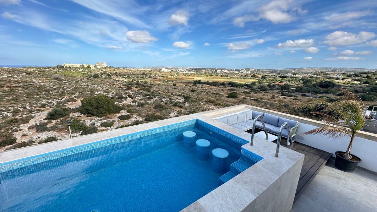Die Panorama Lounge befindet sich im ruhigen und friedlichen Dorf Mgarr, in der Nähe einiger der schönsten Sandstrände und spektakulärer Sonnenuntergänge. Die Wohnung verfügt über einen privaten Pool (ganzjährig verfügbar und auf eine durchschnittliche Temperatur von 27 Grad Celsius beheizt) mit eingebautem Whirlpool sowie eine riesige Terrasse mit freiem Blick auf die Landschaft. Panorama Lounge ist ideal für diejenigen, die einen einzigartigen und ruhigen Kurzurlaub suchen.