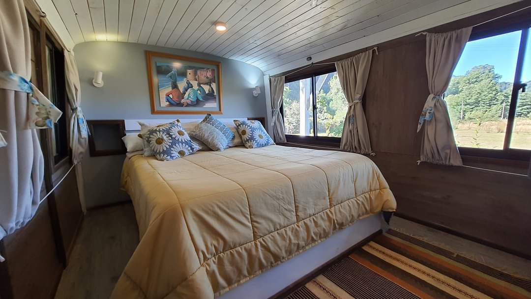 Ein einzigartiges Erlebnis in diesem Mercedes Benz-Bus, der komplett modifiziert wurde, mit reichlich Platz, den du mit deinem Partner eines völlig anderen Aufenthalts genießen kannst. Es hat einen schönen Blick auf den Fluss Trancura mit einer Terrasse und einem Garten. Zweifellos der Traum vieler, schöne Momente in dieser Art von Unterkunft leben zu können, die auf die Träume unserer Jugend zurückgeht. Alle unsere Gäste freuen sich über diese Erfahrung und kommen jedes Mal wieder, wenn sie die Gelegenheit dazu haben.