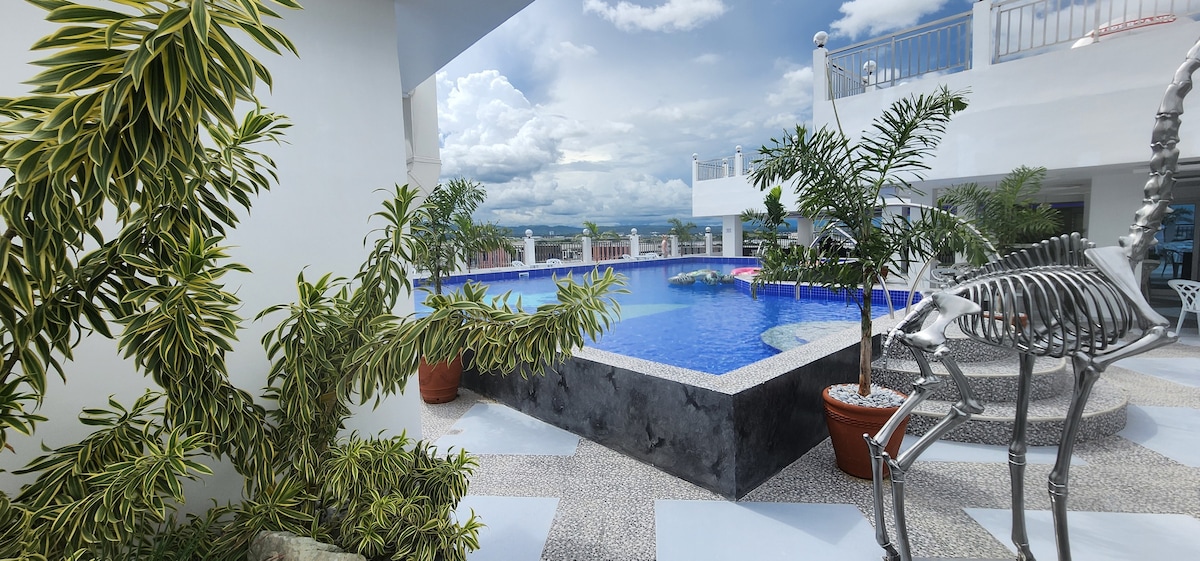 Vergiss deine Sorgen – in dieser geräumigen und ruhigen Unterkunft, die nur für VIPs wie dich gemacht ist. Diese Penthouse-Residenz befindet sich im obersten Stockwerk des Kandi Palace, mit einem großen Balkon und einem 180°-Blick auf den Berg. Arayat Vulkan und du kannst die Lichter von Angeles City genießen. Diese Wohnung ist ausgestattet mit: ✅️ Exquisiter Einrichtung ✅️ Voll ausgestattete Küche ✅️ 3 große Fernseher mit über 2000 Kanälen ✅️ Whirlpool ✅️Kostenloser Zugang zum Fitnessraum ✅️ Ein paar Schritte unterhalb des Kandi-Palastdachs schöner Pool und Qualität Restaurant.