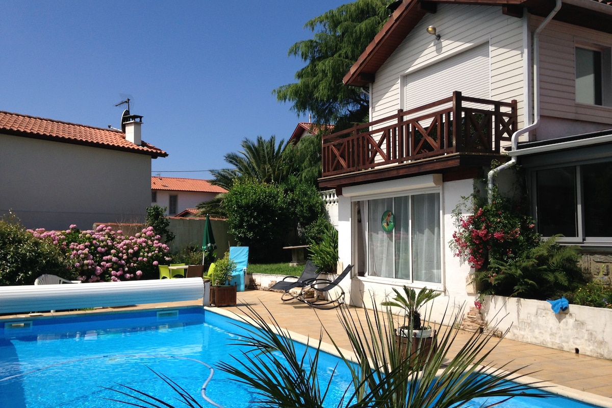 Superbe villa sur la commune d'Anglet pouvant accueillir 8 hôtes. Proches des halles d'Anglet, du quartier des 5 cantons, des plages et de Biarritz. Vous pouvez vous rendre partout à pied ou à vélo (25mn max). 3 chambres sont avec lit double et salle d’eau et 1 chambre avec lits jumeaux. Dans la villa, vous pourrez profiter de sa grande piscine, son jacuzzi ou sa cuisine d'extérieur pour des moments entre amis ou de relaxation sur la côte Basque. Le stationnement est facile et gratuit.