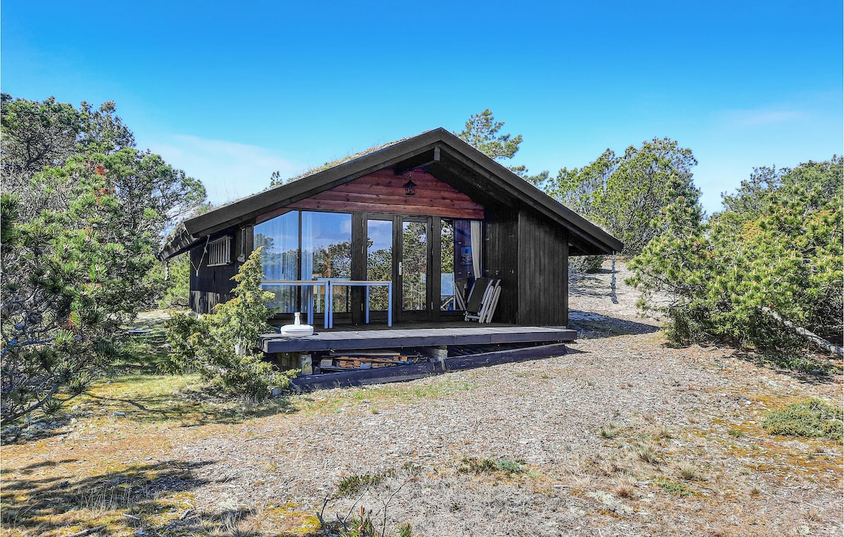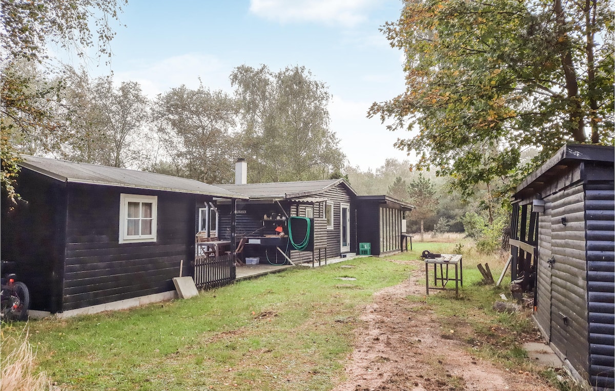 Idyllische Blockhütte auf einem einzigartigen Naturgrundstück in Nordbjerg. Das Haus befindet sich auf einem 5000 m ² großen Naturgrundstück in einem Schutzgebiet. Es gibt viel Platz für Kinder, um zu erkunden und zu toben, oder alternativ die tolle Aussicht von der Terrasse zu genießen. Das Haus ist abgelegen und friedlich, da die Gegend geschützt ist und nur ein paar andere Grundstücke mit Gebäuden beherbergt. Nur der Wind in den Bäumen stört deine Gedanken. Nur 150 Meter vom Haus entfernt, gibt es den Liebesweg und Ausblicke auf den Leuchtturm, die Wüste, den Nordstrand und den flockigen.