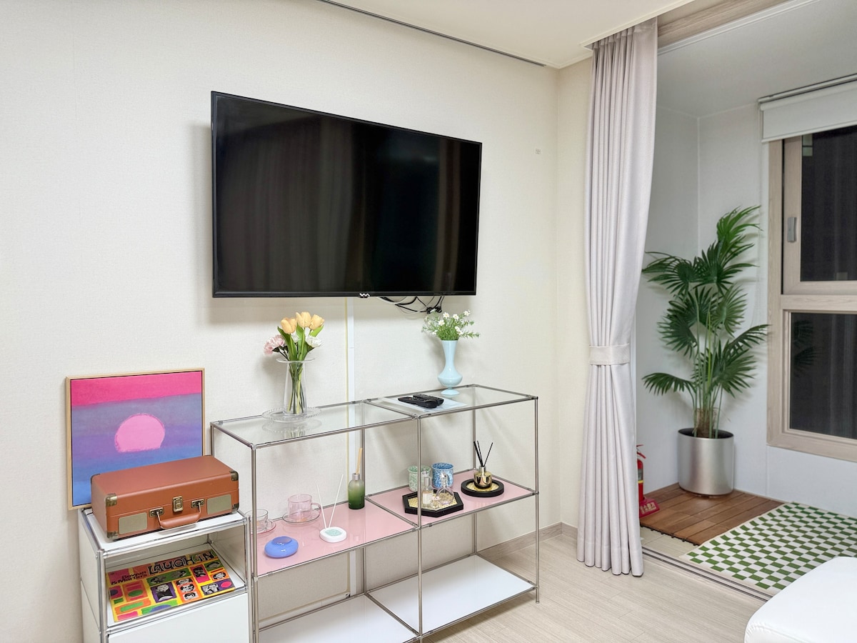 **[❤️2025년 연말 파티, 미리 계획하세요]** 1. 온리 수원을 특별한 가격에 경험해보세요! (원하는 날짜를 설정하시고 호스트에게 예약 문의를 주세요. 할인된 가격을 제안 드립니다.) 2. 얼리 체크인 & 레이트 체크아웃 가능합니다 (시간당 1만원, 사전 문의 필수) Only, Suwon l Where color lives, and comfort lingers. 여행 속에서 오직 행복과 평온을 느낄 수 있기를 바라며, 이 공간을 정성껏 준비했습니다.