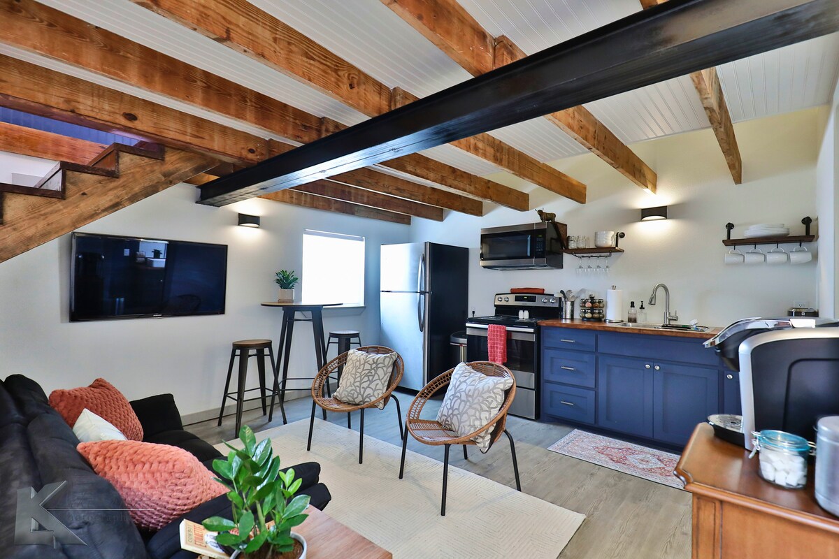 Dieser anspruchsvolle Rückzugsort, der mit westlichen Tönen durchsetzt ist, liegt weniger als 1/4 Meile von der Hardin-Simmons University und dem Hendrick Medical Center entfernt; 2 Meilen von Restaurants, Einkaufsmöglichkeiten und Unterhaltung in Downtown Abilene. Das Erdgeschoss verfügt über einen gemütlichen Wohnraum, große Geräte in einer gut ausgestatteten Küche und das elegante, himmelbeleuchtete Badezimmer. Im Obergeschoss kannst du dich im schönen marineblauen Schlafzimmer für einen beruhigenden Schlaf entspannen. Wir hoffen, dass du diese Wohnung als eine luxuriöse Oase findest, die vom staubigen Weg abkommt!