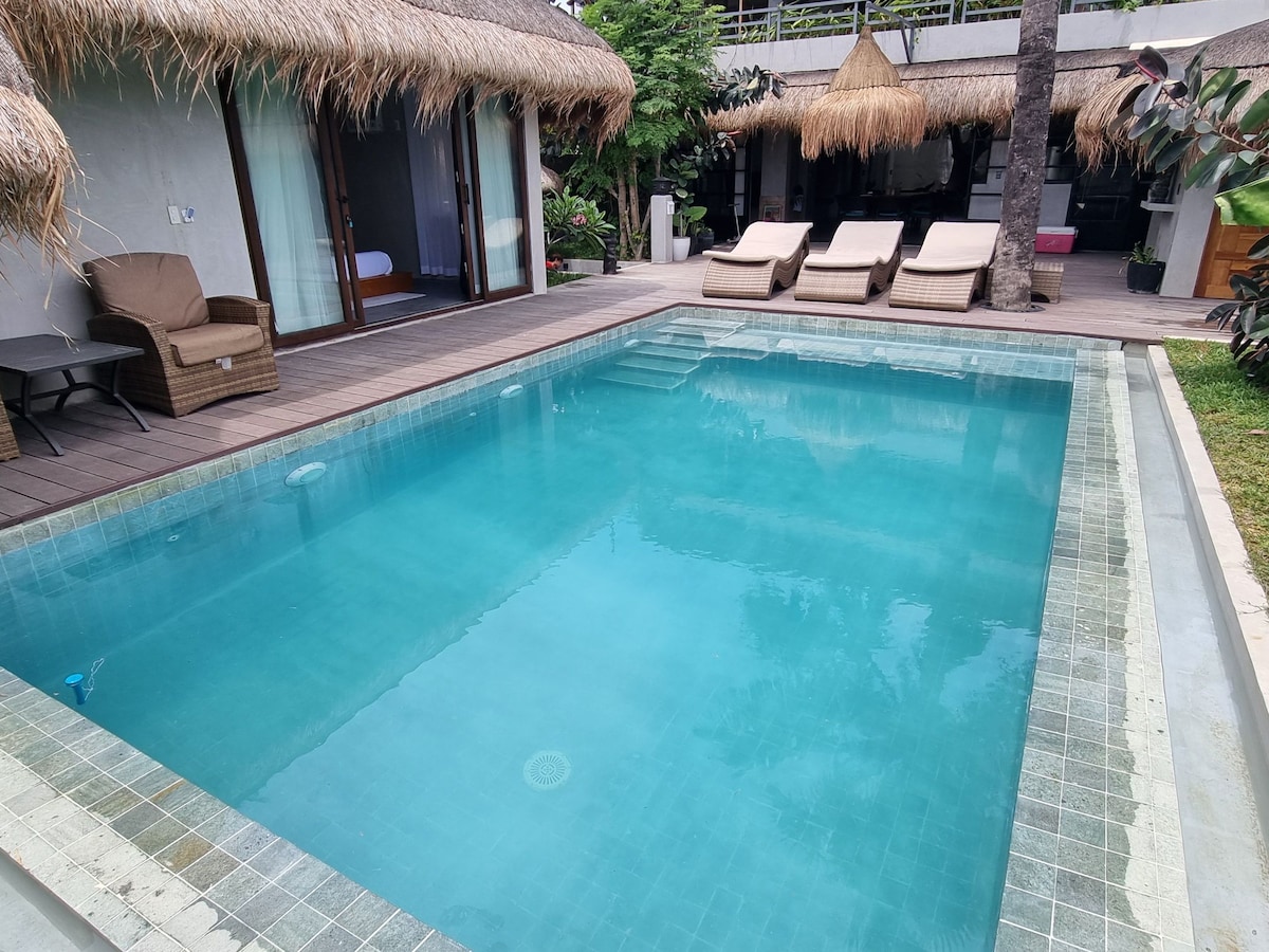 Von dieser zentral gelegenen Unterkunft aus ist die Gruppe in Nullkommanichts an allen wichtigen Orten. Diese Unterkunft liegt 12 Gehminuten von Dmall und 5 Gehminuten vom Strand von Bulabog entfernt. Es ist die einzige Villa im balinesischen Stil (offenes Design) mit 4 Schlafzimmern, Swimmingpool, Küche und Grill in der Gegend von Bulabog. Das Haus befindet sich im Wohngebiet. Nicht sehr belebt, aber trotzdem sehr gut erreichbar mit E-Bikes und Habal. Erwarte jeden Morgen Hähne, die dich der Natur näher bringen, während du den Sonnenaufgang beobachtest.