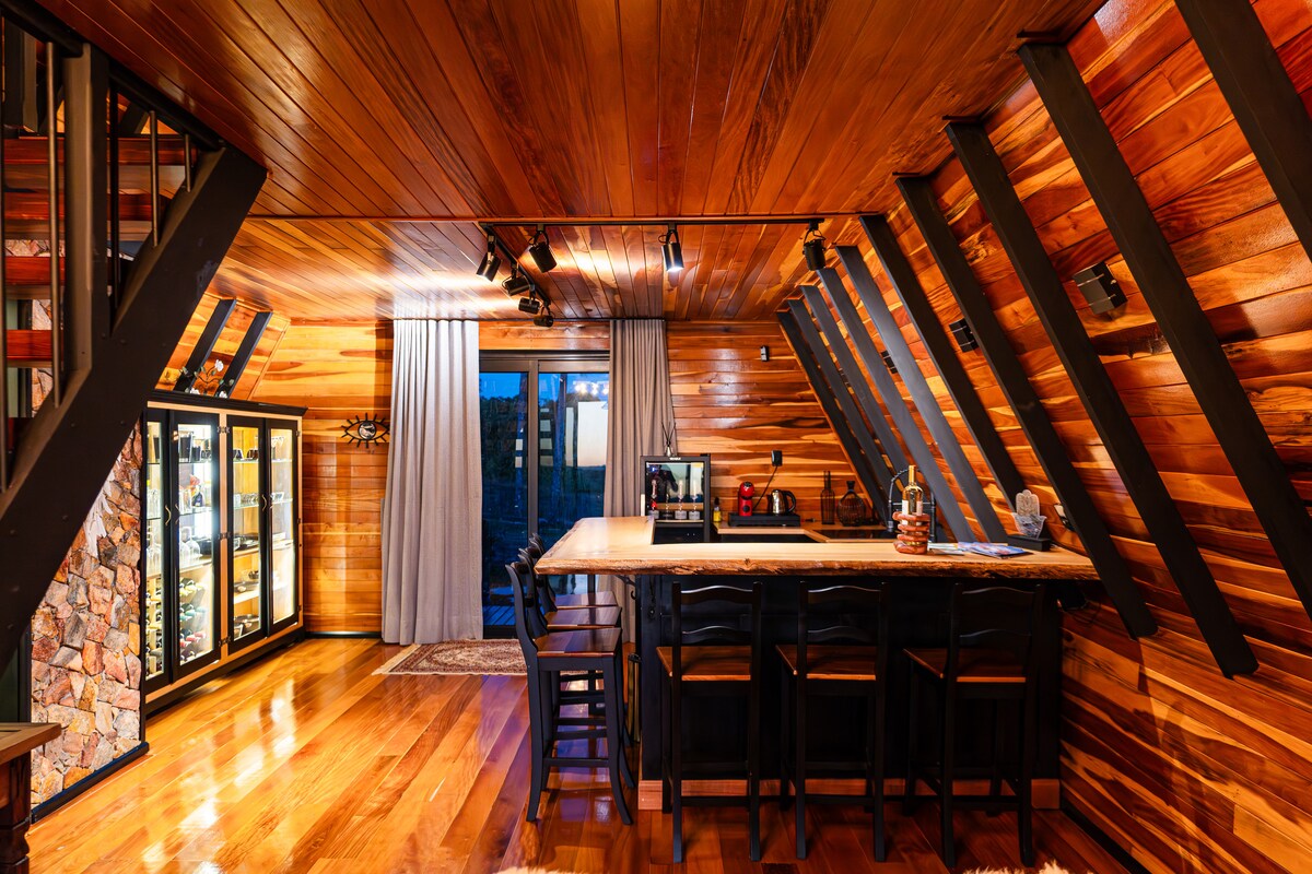 Descubra o refúgio perfeito no alto das montanhas de Cotiporã. Projetada para oferecer uma experiência única de hospedagem, ela combina arquitetura moderna com elementos rústicos, em um cenário de tirar o fôlego. Localizada em um ponto privilegiado, cercada pela natureza exuberante da Serra Gaúcha, a cabana proporciona um pôr do sol espetacular todos os dias – um convite para relaxar, desconectar e viver momentos inesquecíveis. *Reservas de Seg. a Qui. Não contemplam cesta de boas vindas.