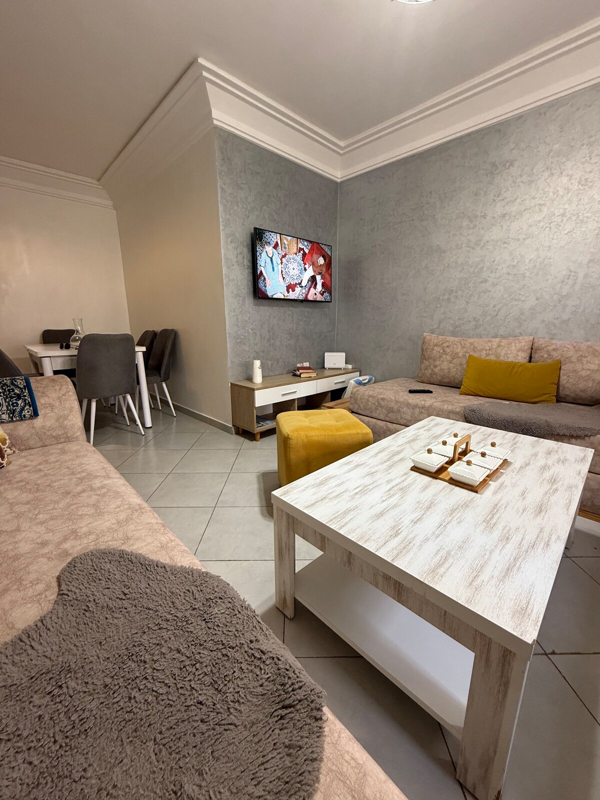Schaffe Erinnerungen in dieser familien- und freundlichen Unterkunft. Erhabene, geräumige und helle Wohnung von 60 m², in einer sehr ruhigen Gegend, in einer sicheren Residenz*. 5 Minuten vom Yachthafen Agadir und 10 Minuten von den berühmten Badeorten Taghazout entfernt. Der nächste Strand liegt 600 Meter entfernt und ist zu Fuß oder mit dem Auto erreichbar. Ideal für deinen Urlaub zu jeder Jahreszeit. Diese Wohnung ist auch für Geschäftsreisen geeignet, sodass du die Stadt in deinem eigenen Tempo entdecken kannst.