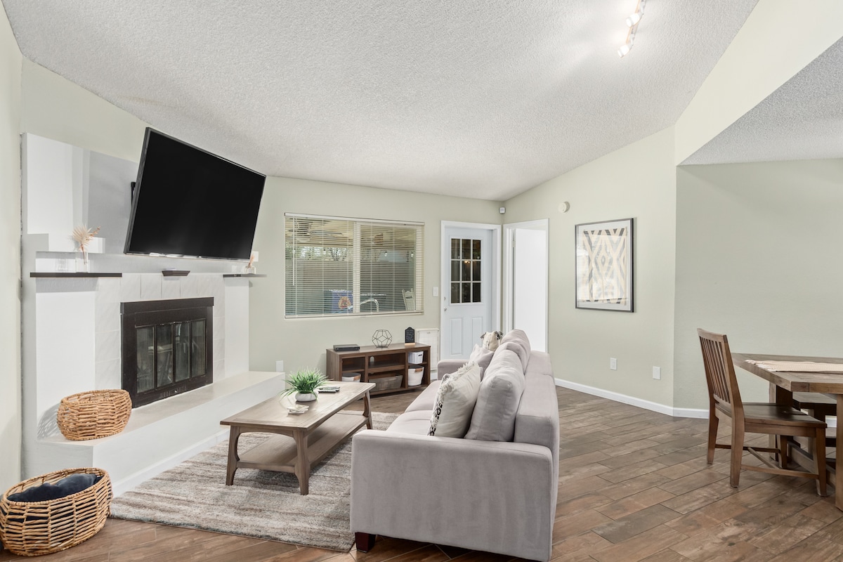 Eingebettet in die Ausläufer des San Tan Valley empfängt dich unsere neu renovierte Casita mit dem gleichen Charme und Komfort wie zuhause. - Privater Eingang/eigenständiger Check-in -Minuten zum Flughafen Mesa Gateway, Schnepf Farms, AZ Athletic Grounds, Horse Shoe Equestrian Center & San Tan Mtn Park -Golf, Einkaufsmöglichkeiten und Restaurants in der Nähe -Gemütlicher Innenkamin (saisonal) - Smart-TV -Komfortable Terrasse mit Grill und Cornhole - Waschmaschine und Trockner -Gemeinschaftspools & Tennis-/Pickleballplätze - Zusätzlicher Wohnmobil- und Wohnwagenparkplatz -Hochgeschwindigkeits-Internet