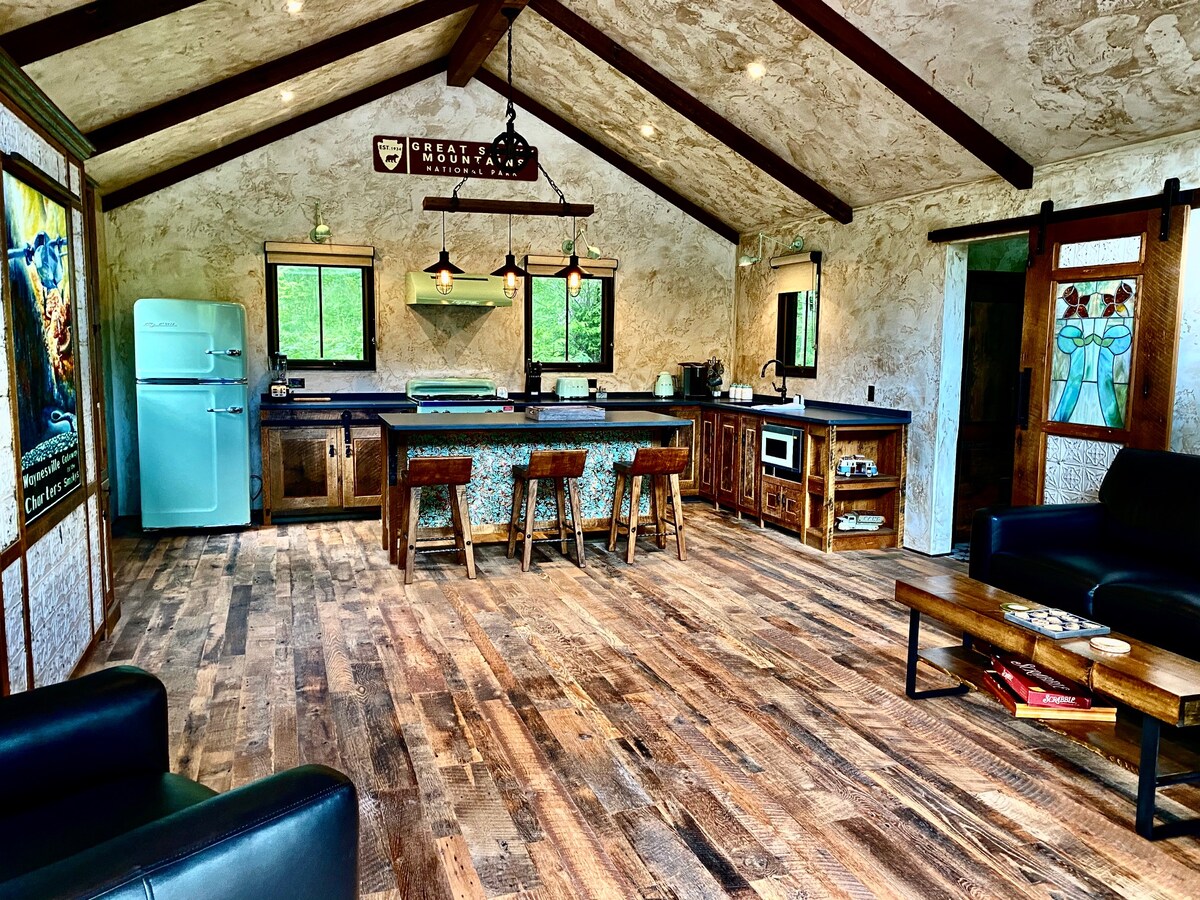 Diese Berghütte ist ein wahrer Zufluchtsort! Eingebettet auf 16 Acres in den Bergen mit Blick auf einen 6088 Fuß hohen Gipfel, ist es der perfekte Zufluchtsort. Inspiriert von einer rustikalen italienischen Villa. Privat & ruhig – Die Hütte ist 7 Minuten von Geschäften & Restaurants von Waynesville & 30 Minuten von Asheville entfernt. Unsere brandneue, restaurierte Studio-Hütte wurde von lokalen Handwerkern individuell gestaltet und ist ein Ort, an dem du dich entspannen, (wirklich) dekomprimieren und die wunderschönen Berge der Great Smokies erkunden kannst!