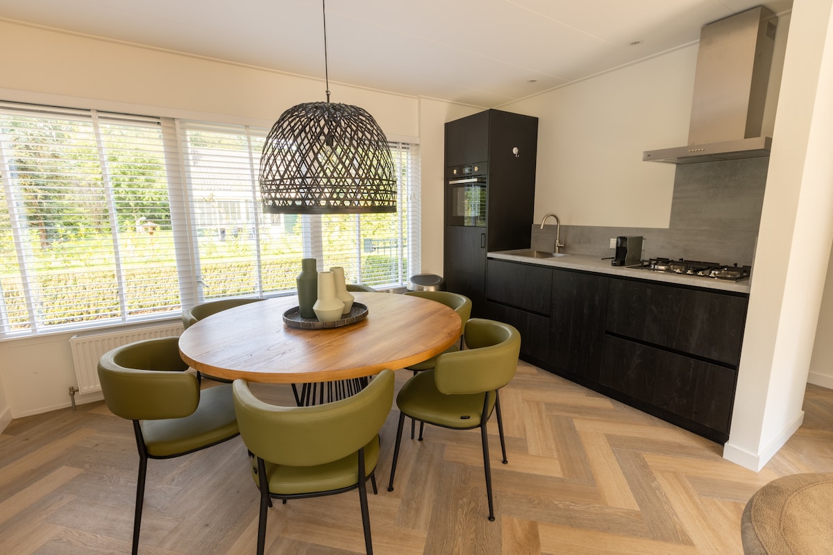 Dieses komfortable Ferienhaus befindet sich direkt an der Drents-Friese Wold. Das Haus befindet sich in einem Park ohne Einrichtungen/Tor oder Regeln. Die Häuser im Park sind sowohl dauerhaft bewohnt als auch für den Urlaub vermietet. In der Umgebung kannst du nach Herzenslust spazieren gehen, Fahrrad fahren und Mountainbike fahren. Städte wie Assen, Leeuwarden und Groningen sind leicht zu erreichen. Das Haus ist komplett und stilvoll eingerichtet und lädt mit einem Buch am Kamin zum Entspannen ein.