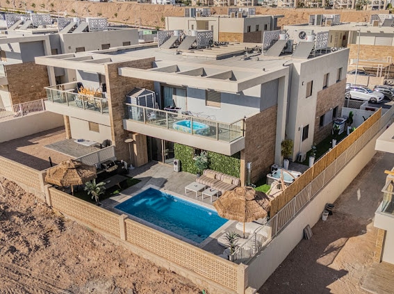 ☆So ein hoher Stil hoch über allen anderen☆ Penthouse Ofek Luxuriöse Familienurlaubslichter für die ganze Familie in der besten Lage in Eilat und eine Vielzahl von Leckereien ⇦ Privater ✔ beheizbarer Pool Großer ✔ Sonnenbalkon mit riesigem Sitzsystem und Winterheizung ✔ 3 Schlafzimmer Komplett ausgestattete✔ Küche ✔ Wohnzimmer mit Meerblick ✔ Alles in sauberem und modernem Design ✔ 360 Grad Aussicht von jeder Ecke aus ✔ Mamfokam in einer gemütlichen neuen Nachbarschaft, Geschäfte und ein Aussichtspunkt unter dem Haus ✔ 100- Privatsphäre und Ruhe