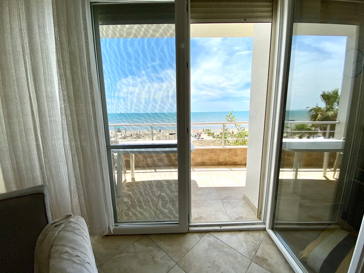 Charmante und komfortable 3-Zimmer-Wohnung direkt am Strand von Durrës mit Meerblick von den Balkonen, im 2. Stock eines privaten Gebäudes. Perfekt für Sommer oder Winter, mit Zugang zum Strand in der ersten Reihe und atemberaubendem Blick auf das Meer. Toller Ort für Smart Working mit vollem Zugang zum Router, über Ethernet-Kabel und WLAN 300 Mbit/s/unbegrenzte Daten + Kabel-TV mit Premium International Movie Channels + Sport.