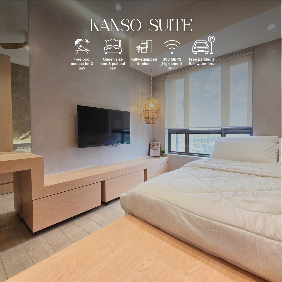 Welcome to The Meydan Suites at Azure North, a Japandi-inspired studio retreat in San Fernando, Pampanga. Just 1.5 hours from Manila, our spacious 2-bed studio comes with a full kitchen, one bath, and a private balcony on the quiet side of Azure. For ₱200 per guest per shift, you can enjoy resort-style amenities including the wave pool, the beach pool, and leisure facilities. It is the perfect sulit escape for couples, families, or barkada.